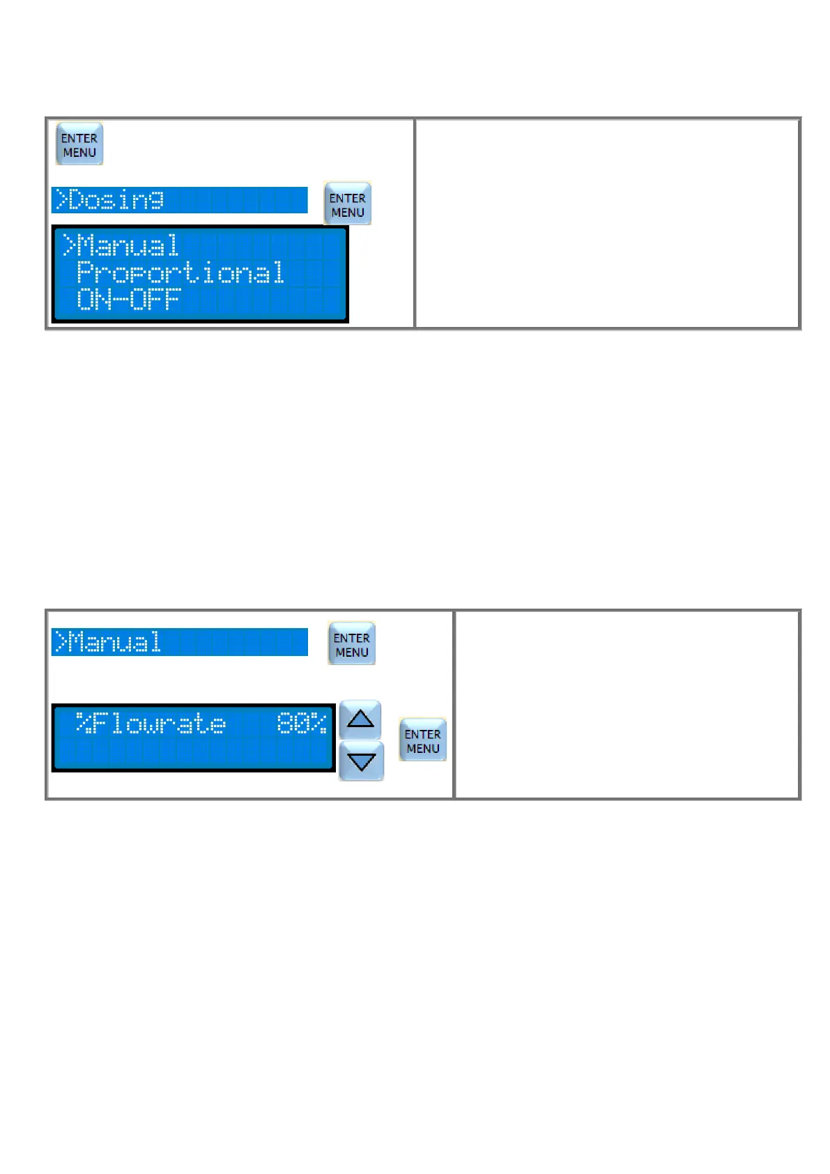 the type of dosing: MANUAL, PROPORTIONAL, ON-OFF