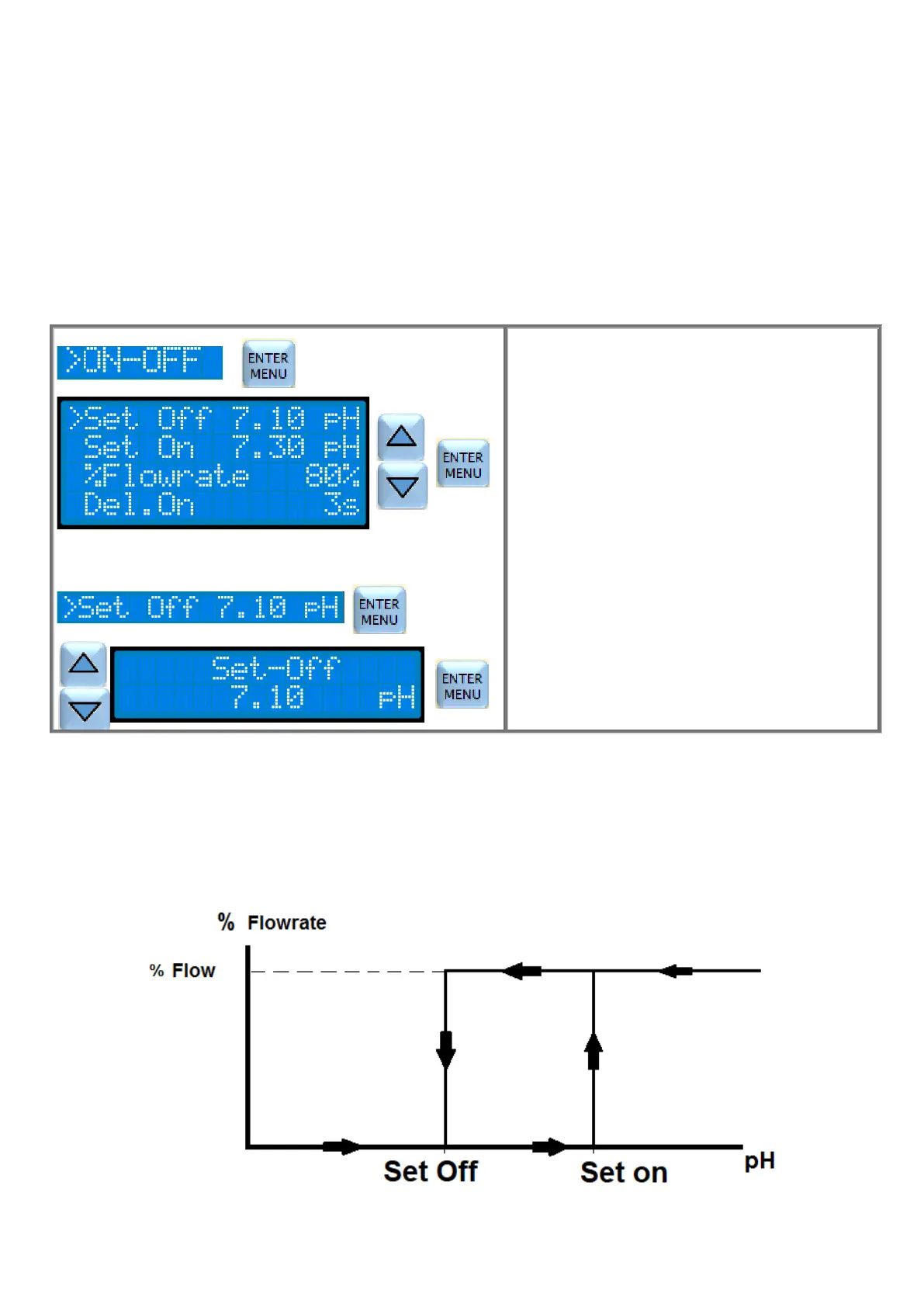 starting to dose. As long as the measure remains above 7.10pH the pump continues to dose at the programmed flowrate