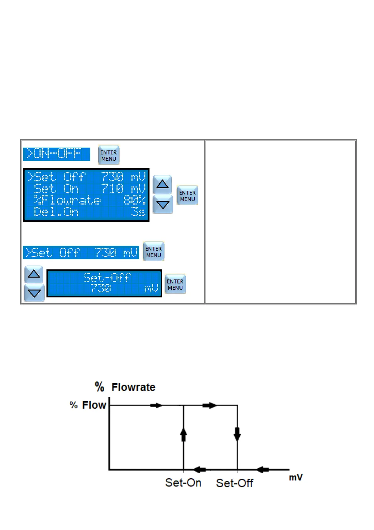 Del.On = seconds expected before dosing when measure exceeds the Set On value.