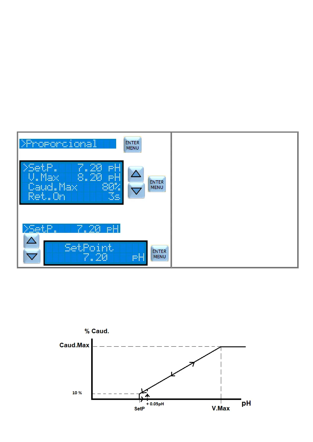 Con una medida igual o superior a 8.20pH, la bomba dosifica al 80% del caudal máximo.