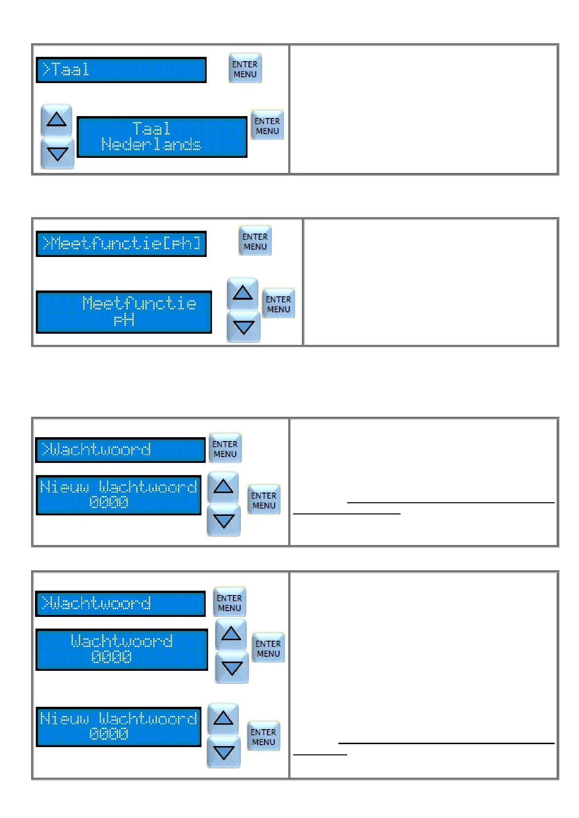 Het wachtwoord beschermt de aanpassing van the Dosering en Utility menu’s.