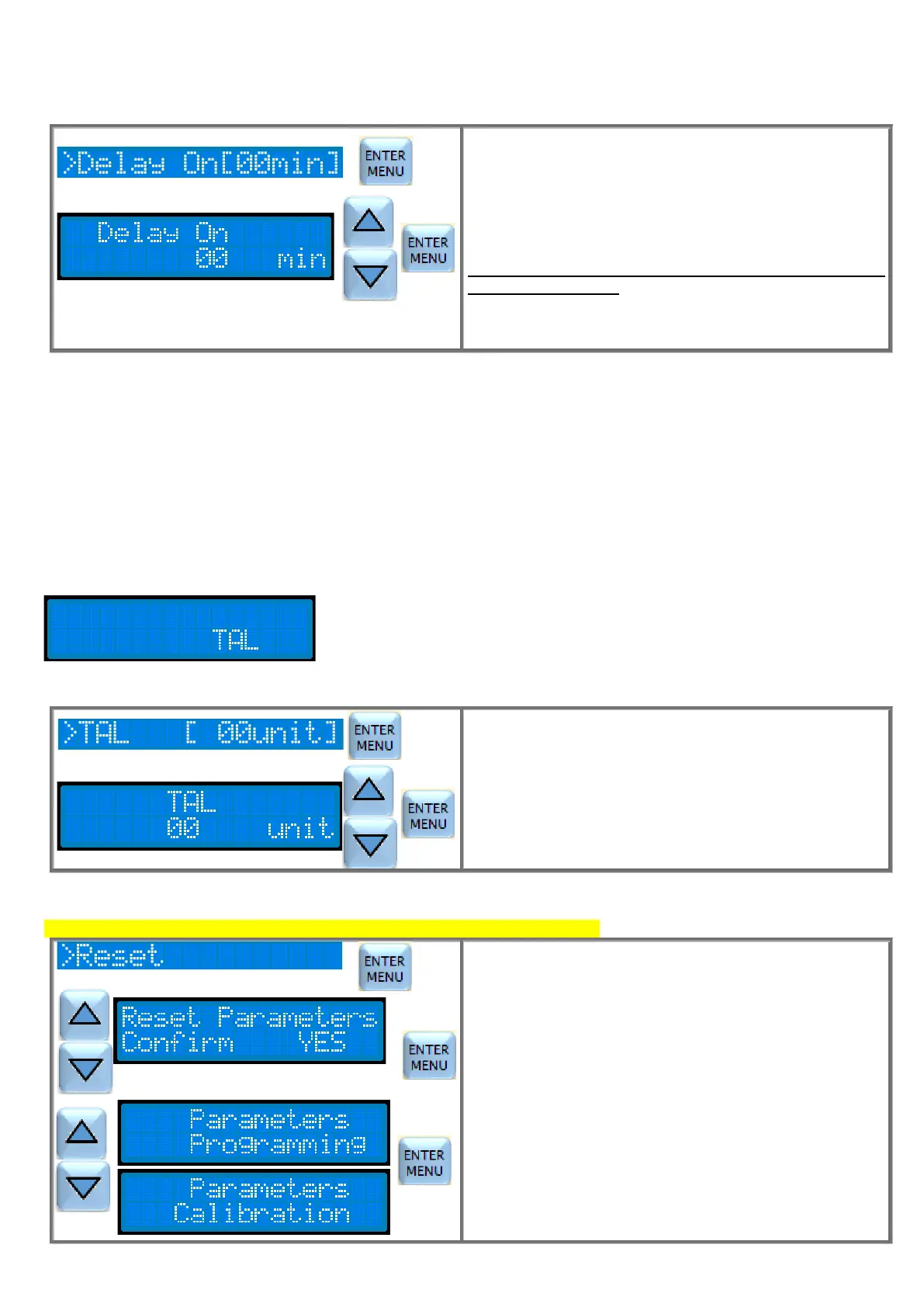 Zeit zeigt das Display die Meldung "Delay on", die sich mit dem Schreiben des Betriebsmodus und der Durchflussmenge