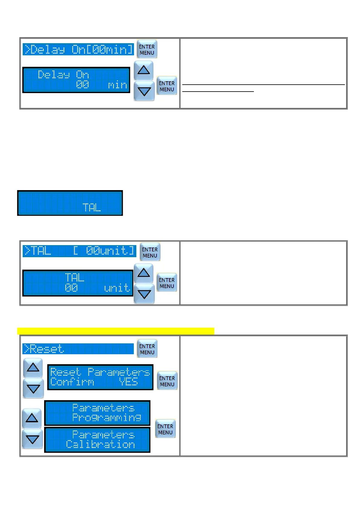 3) IL DISPLAY visualizza: sulla seconda riga “Tal” che si alterna alla scritta del modo di funzionamento e portata.