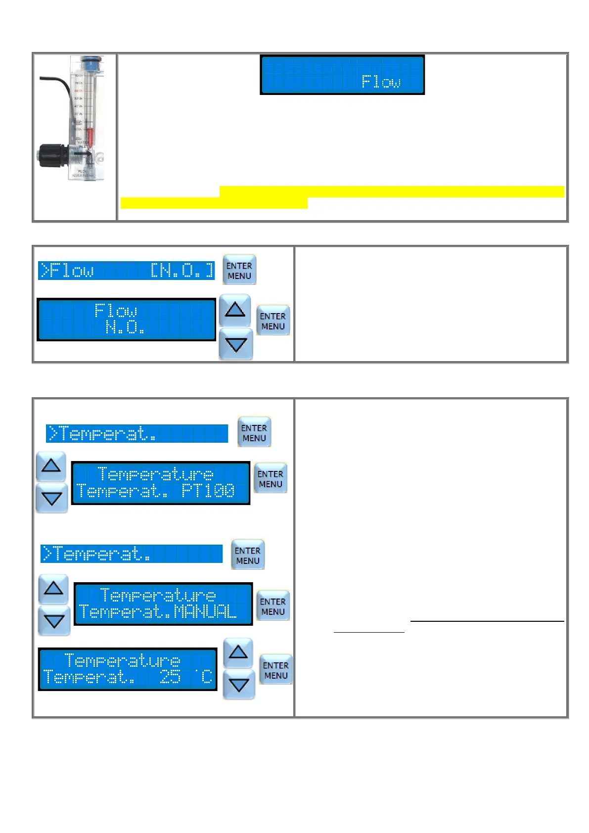 3) Il display visualizza alternativamente la scritta “Flow” sulla seconda riga e il modo di
