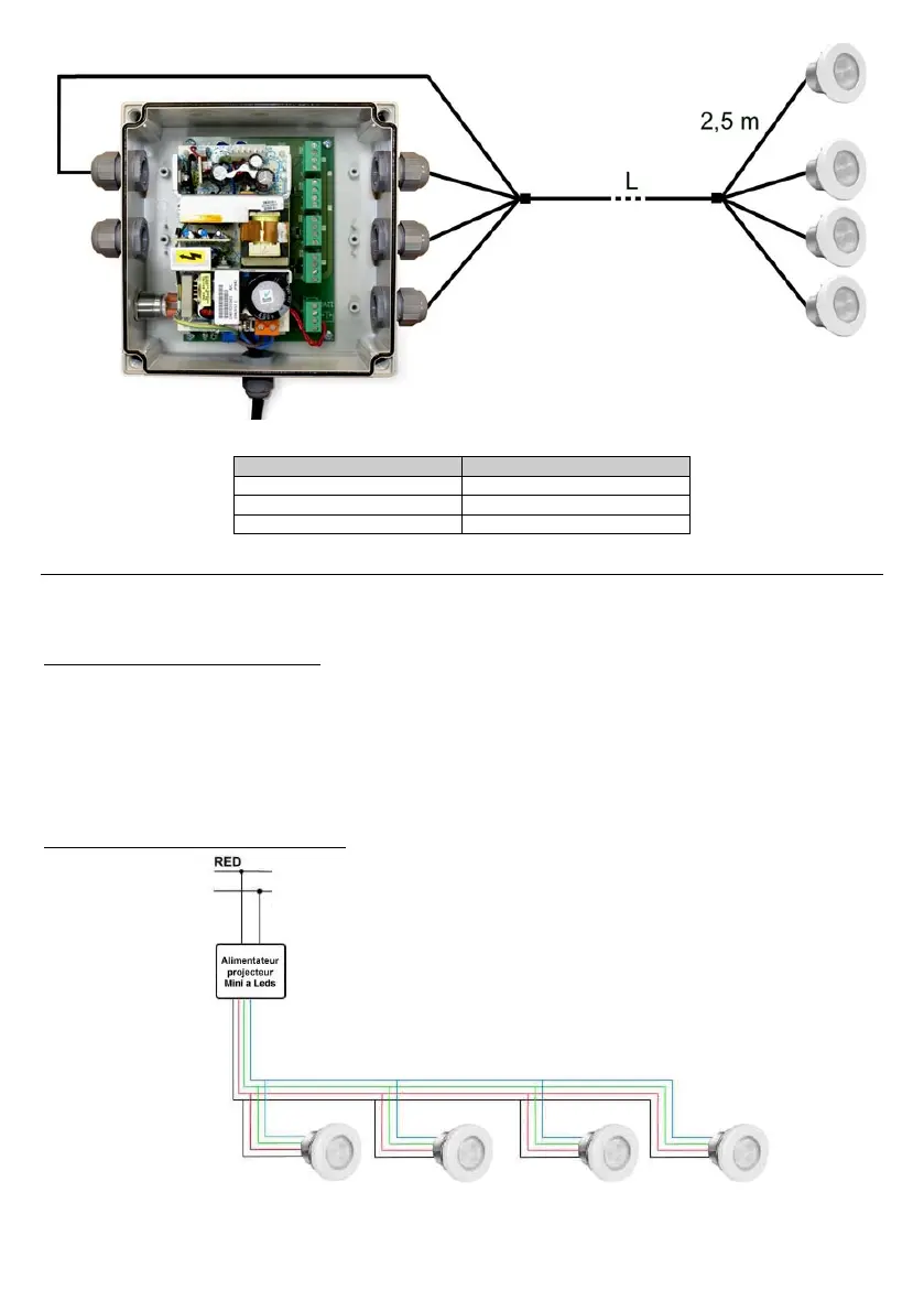 Pour cette modalité de connexion, il faudra utiliser des câbles ayant des sections appropriées en fonction de leur longueur.