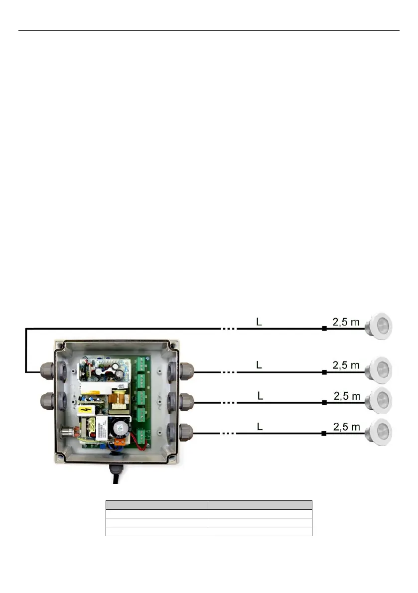 Se la distanza tra i faretti e l’alimentatore è superiore a 2,5 metri, si renderà necessario prolungare i cavi, realizzando un