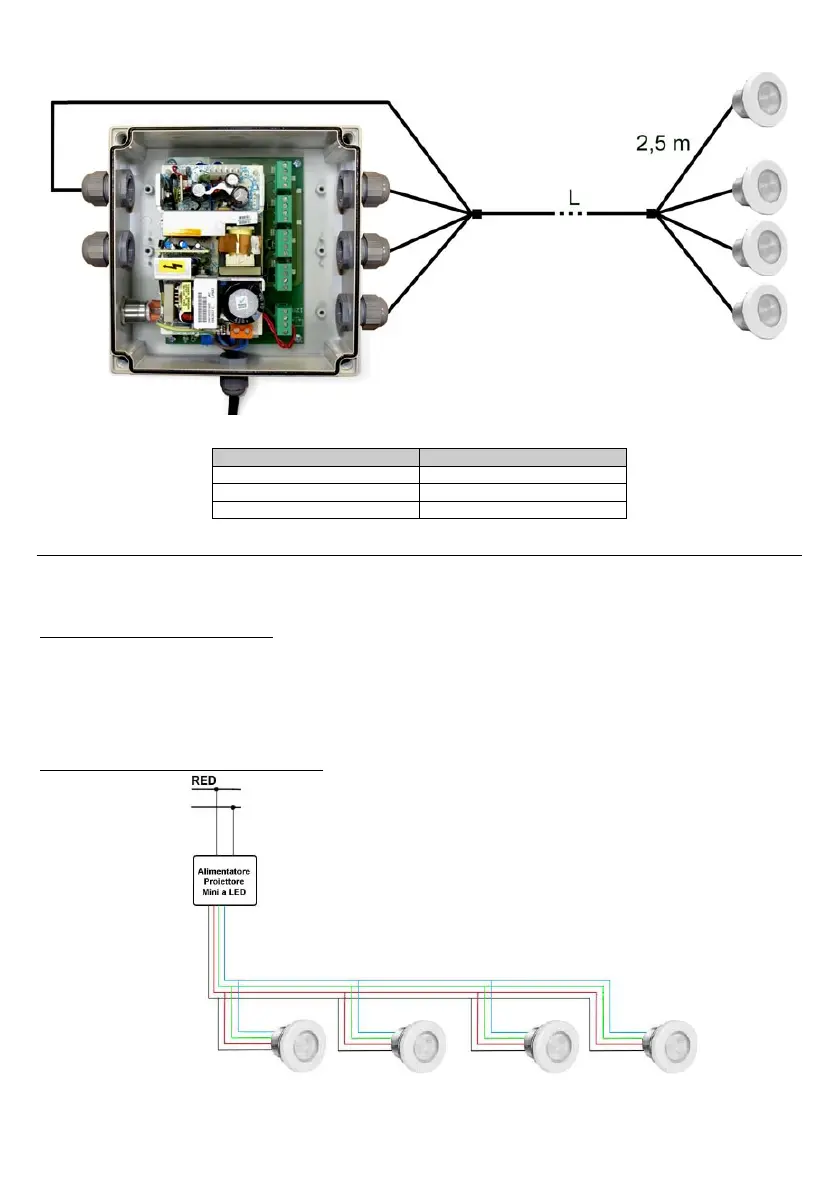 Per facilitare le connessioni tra l’alimentatore e i faretti si può utilizzare un unico cavo di allaccio.