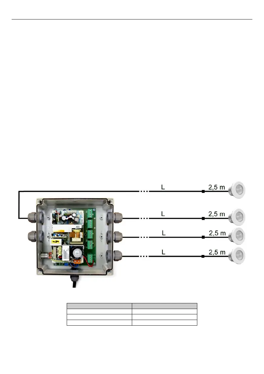 O foco é fornecido com 2,5 metros de cabo. Se os cabos estiverem próximos do alimentador, podem ser ligados