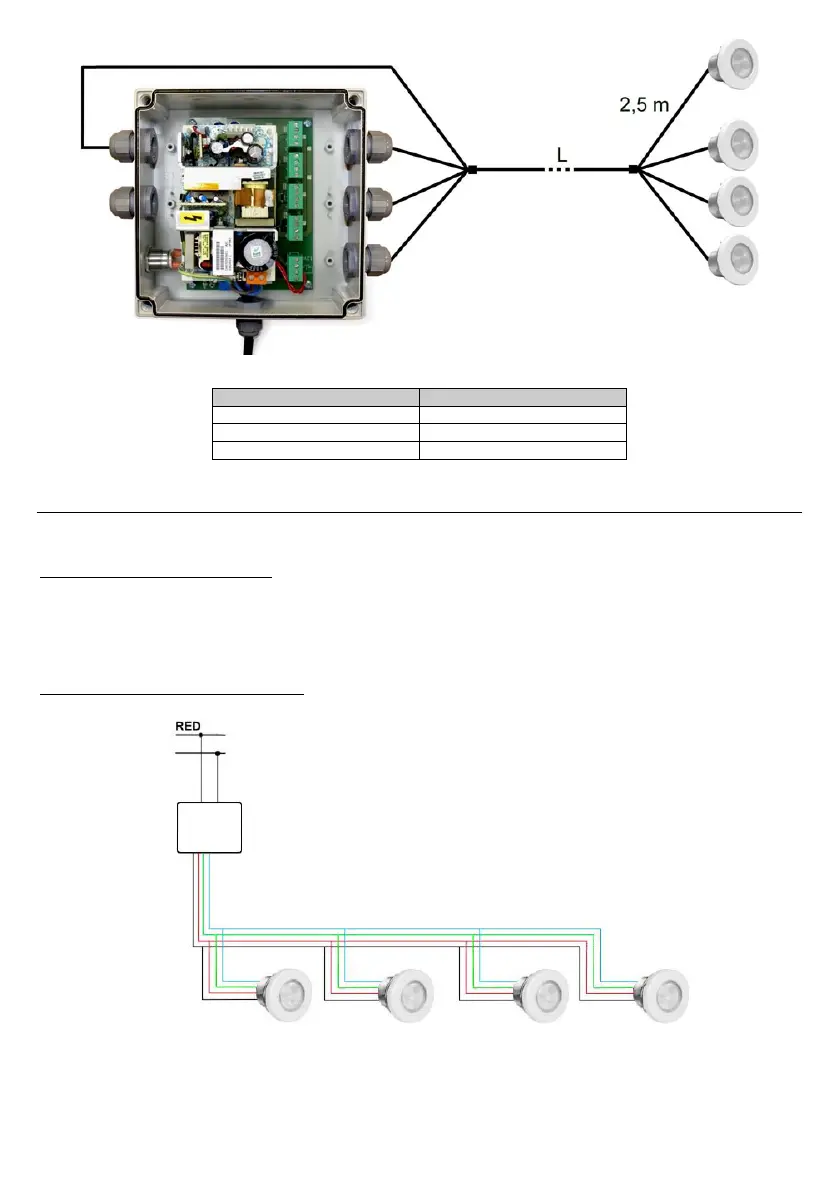 For this connection method, cables with appropriate sections should be used according to their length.