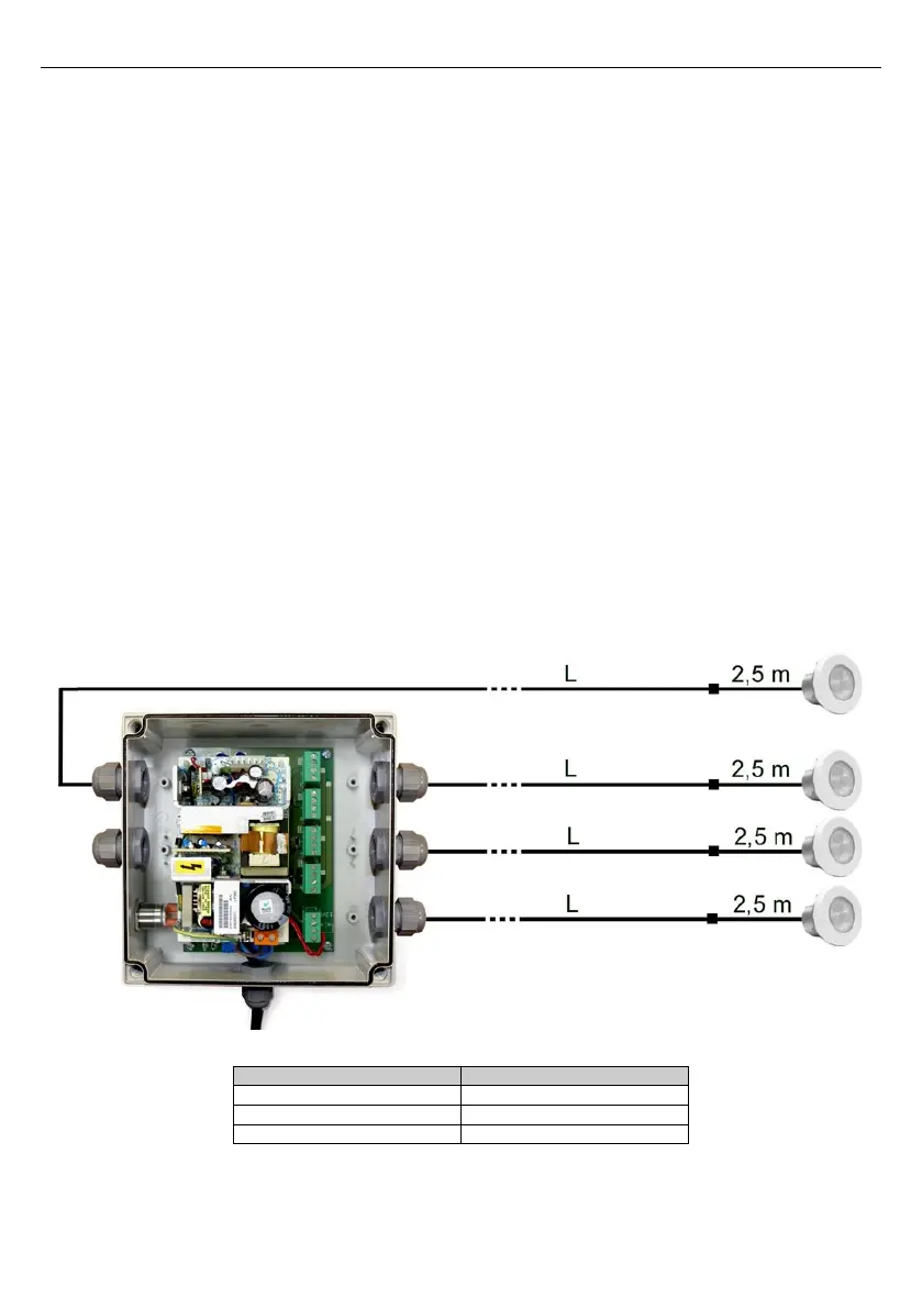Si la distance entre les projecteurs et l’alimentateur est supérieure à 2,5 mètres, il faudra rallonger les câbles, en faisant