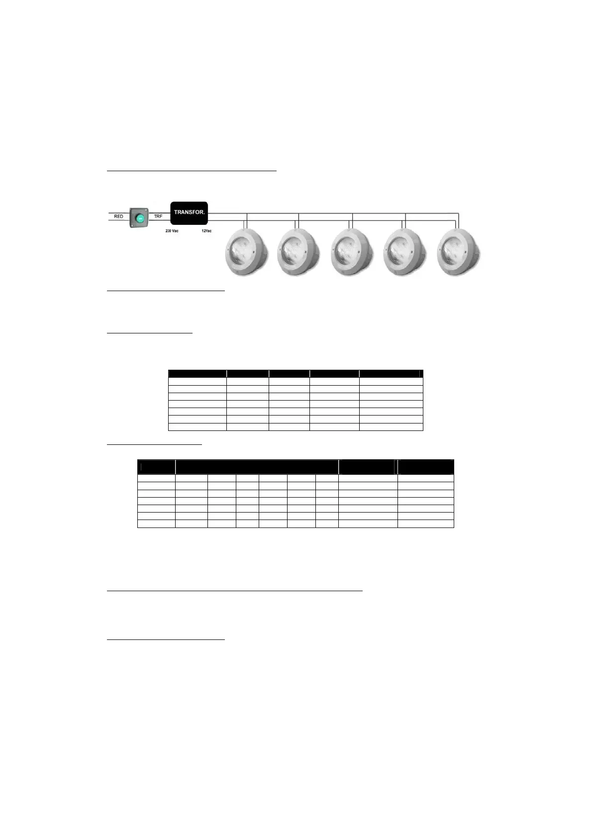 5 projecteurs, vous devez les connecter en parallèle à un transformateur d’au moins 300VA. Le bouton-poussoir devra être dimensionné pour