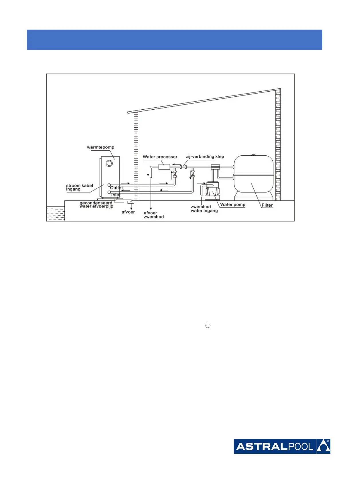 voor te zorgen dat het water circuleert door de warmtepomp. De warmtepomp zal niet opstarten als het water
