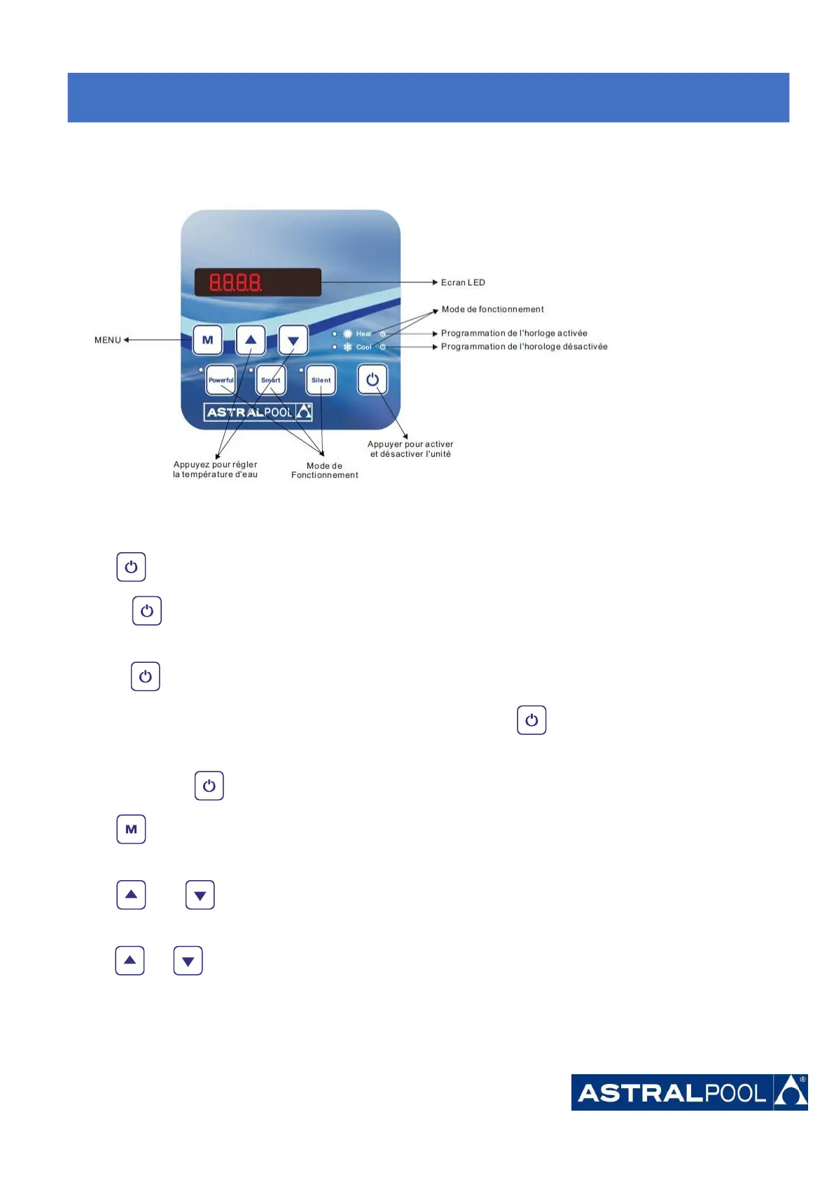 Druk op om de warmtepomp start, toont het LED-display van de gewenste temperatuur van het water