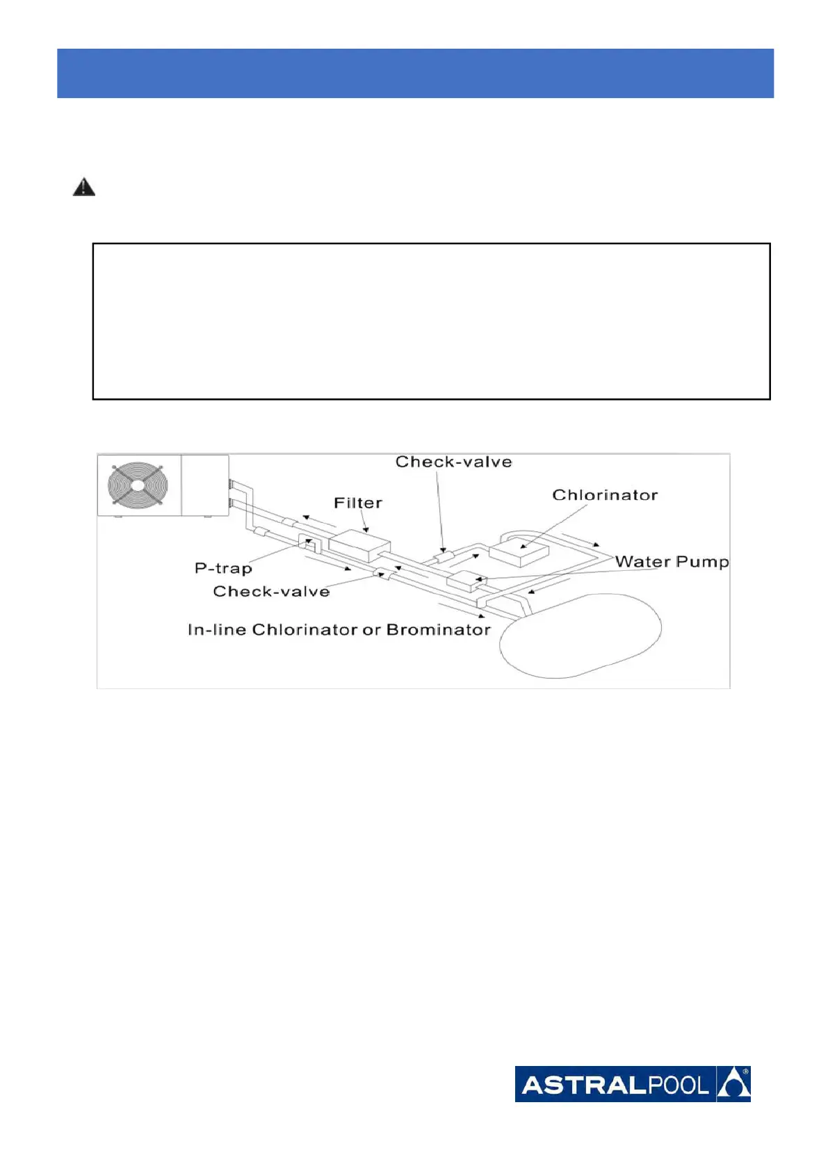 Note: If automatic dosing equipment for chlorine and acidity (pH) is used, it is essential to protect the heat