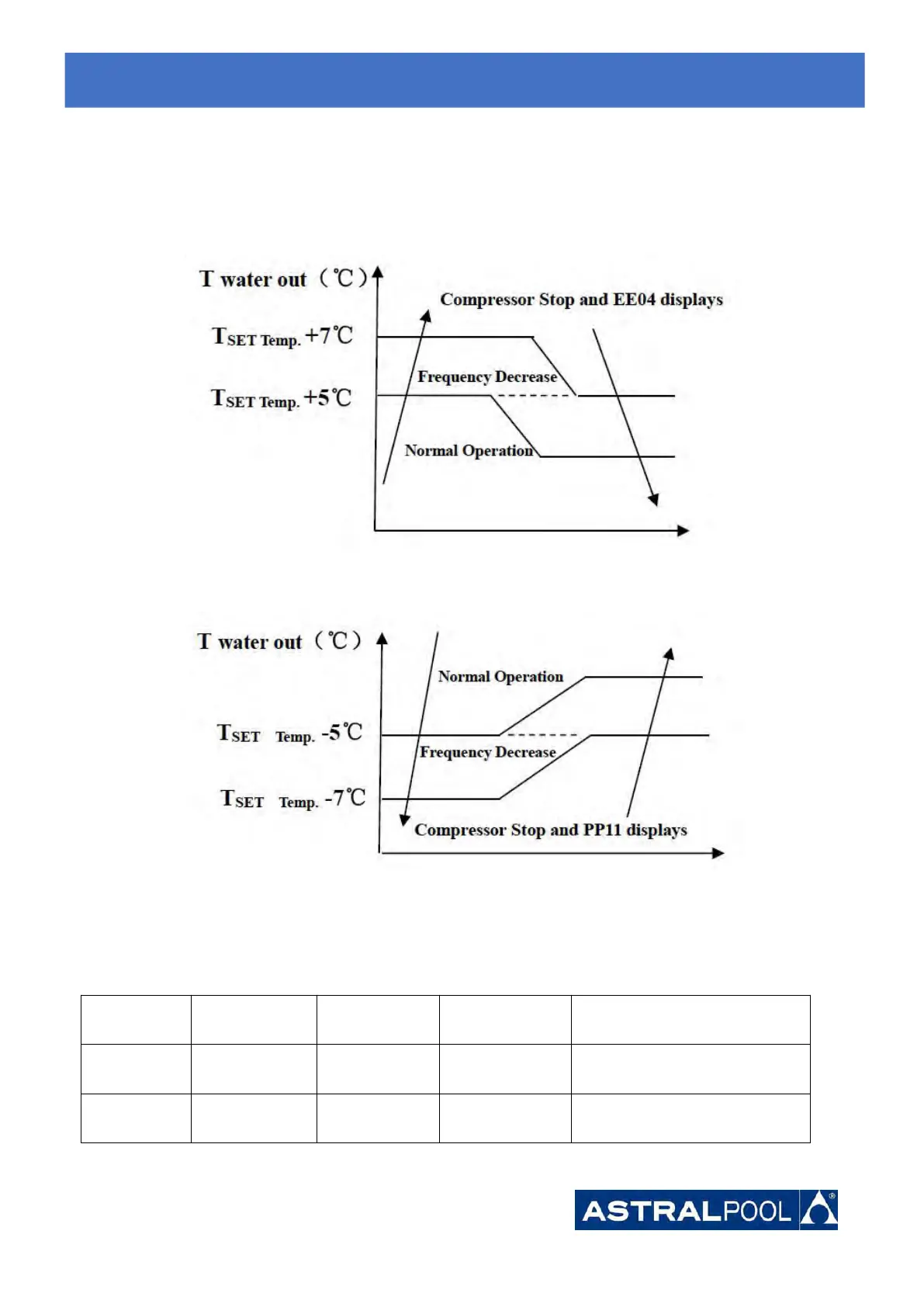 2. In cooling mode, if the water out temperature is lower than the set temperature over 7℃, LED