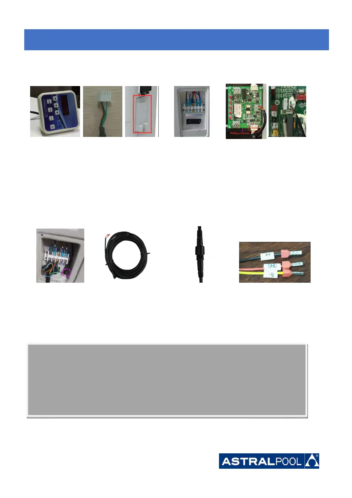 - Take the Modbus/Fluidra Connect signal wire from the accessories (photo7) and put the round end of the signal