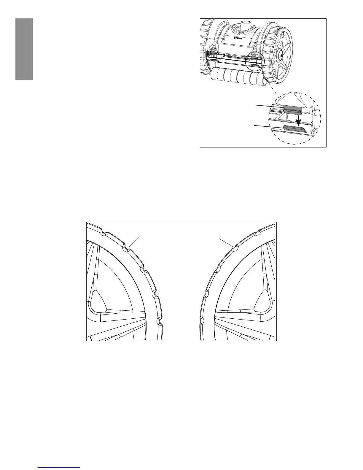 1. Place the cleaner on a at work surface and seat the top of the rubber re onto the top of the wheel. Be sure that the