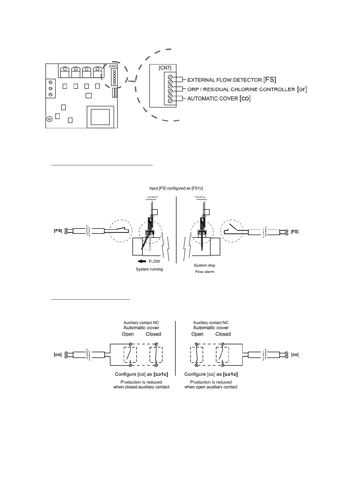 (external flow detector at rest), the electrolysis system switches off due to the flow alarm. Connect the external flow detector wiring