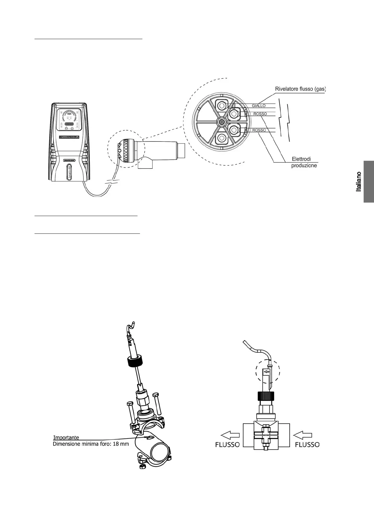 1. Installare la flangia fornita su un tratto della tubazione situato in prossimità dell’ingresso della cellula d’elettrolisi. La flangia dovrà