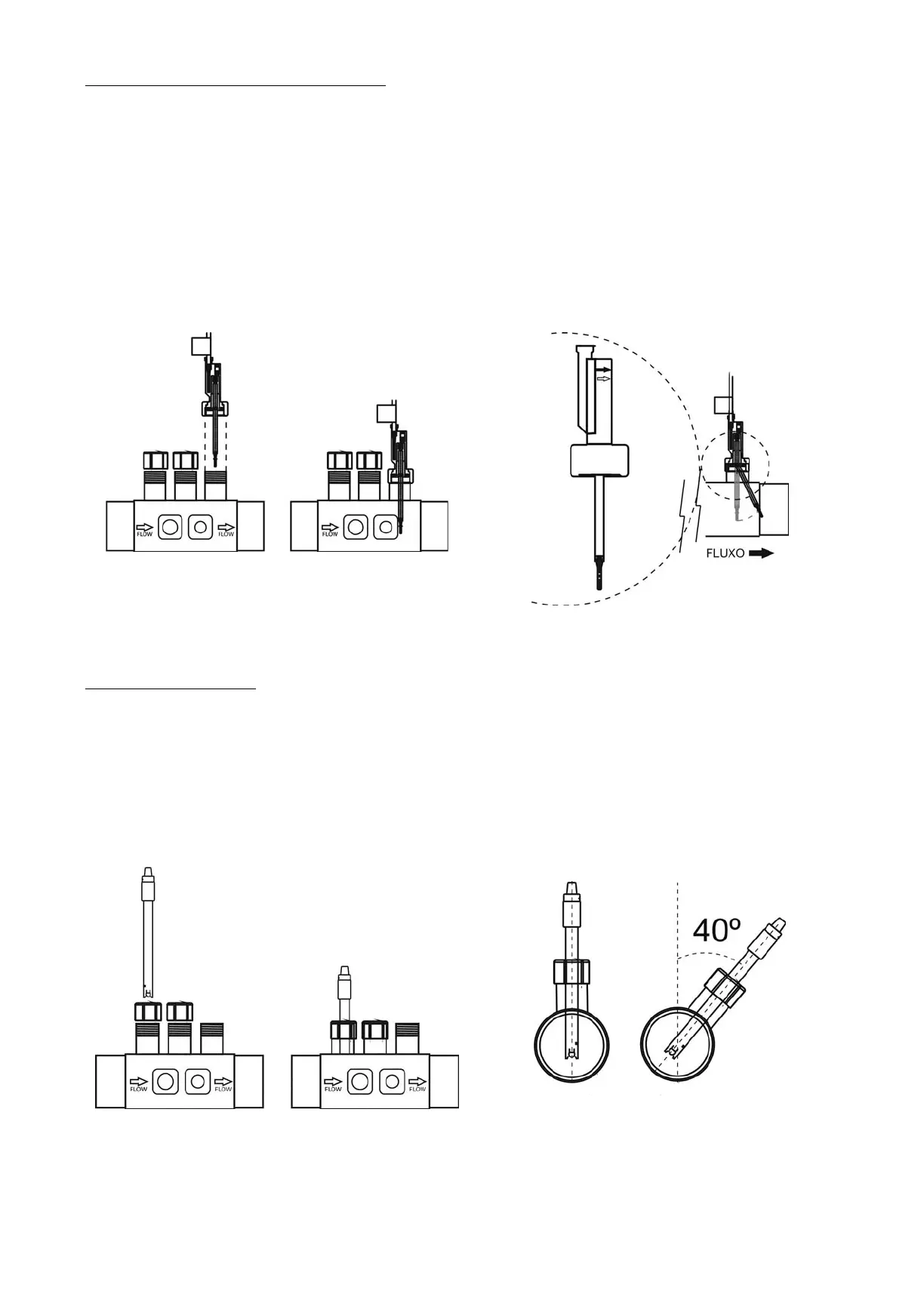 5. Instalar sempre o sensor de pH preferivelmente na posição vertical ou com uma inclinação máxima de 40° (Fig. 13).