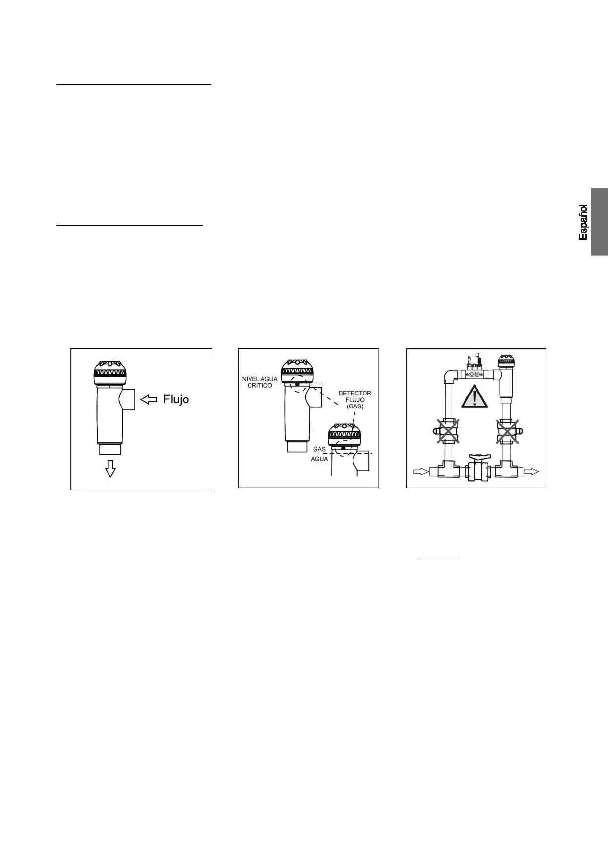 situarse, preferentemente, de forma VERTICAL en un lugar de la tubería que pueda ser aislado del resto de la instalación mediante dos