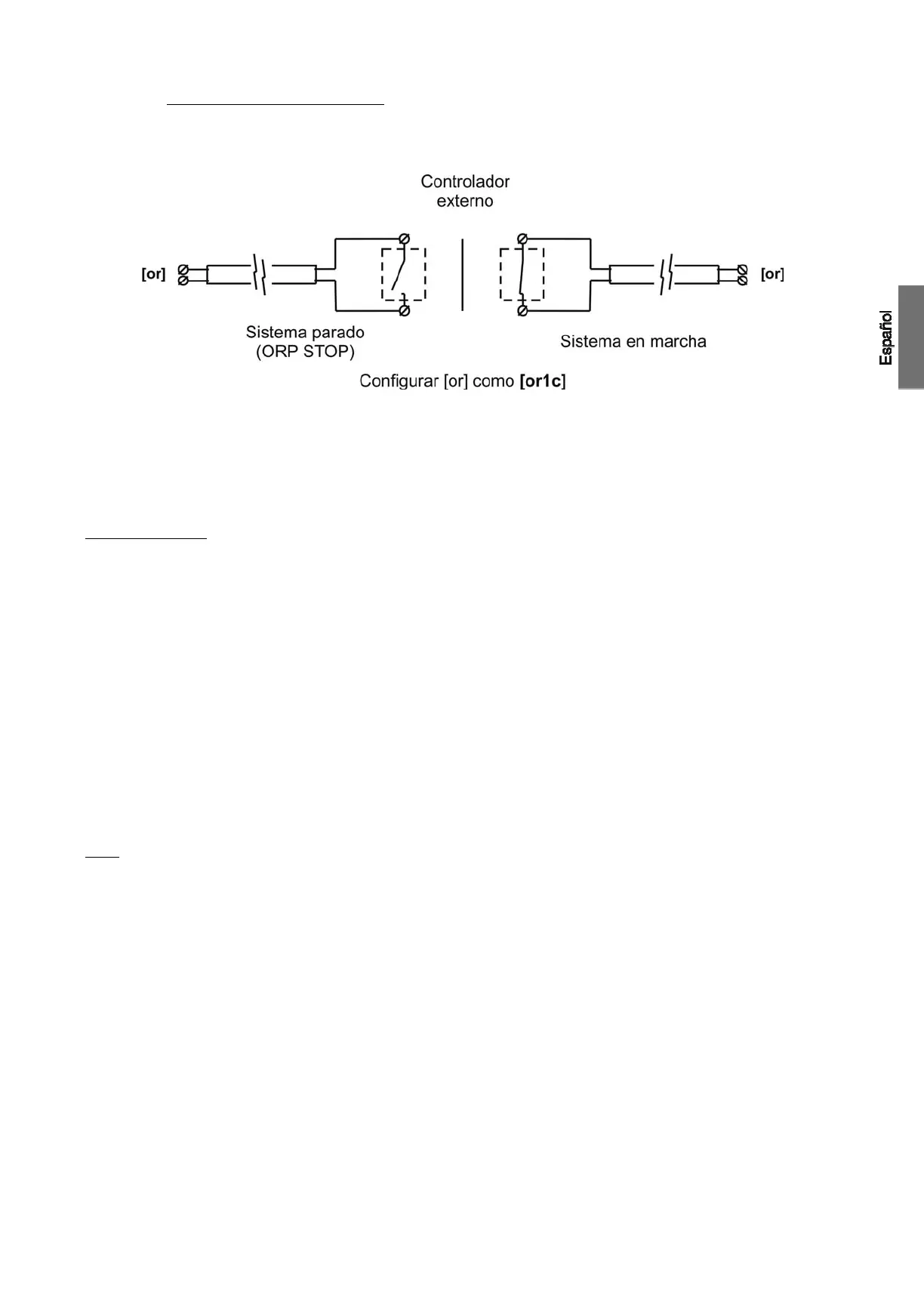 [or] Control ORP / CLORO RESIDUAL: entrada para contacto libre de tensión. Esta entrada se puede utilizar para hacer