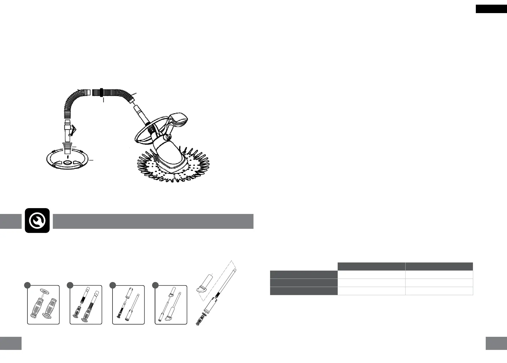 der Pooläche haftet. In diesem Fall muss der Fuß-Pad ausgetauscht werden. Das Ablenkrad verschleißt,