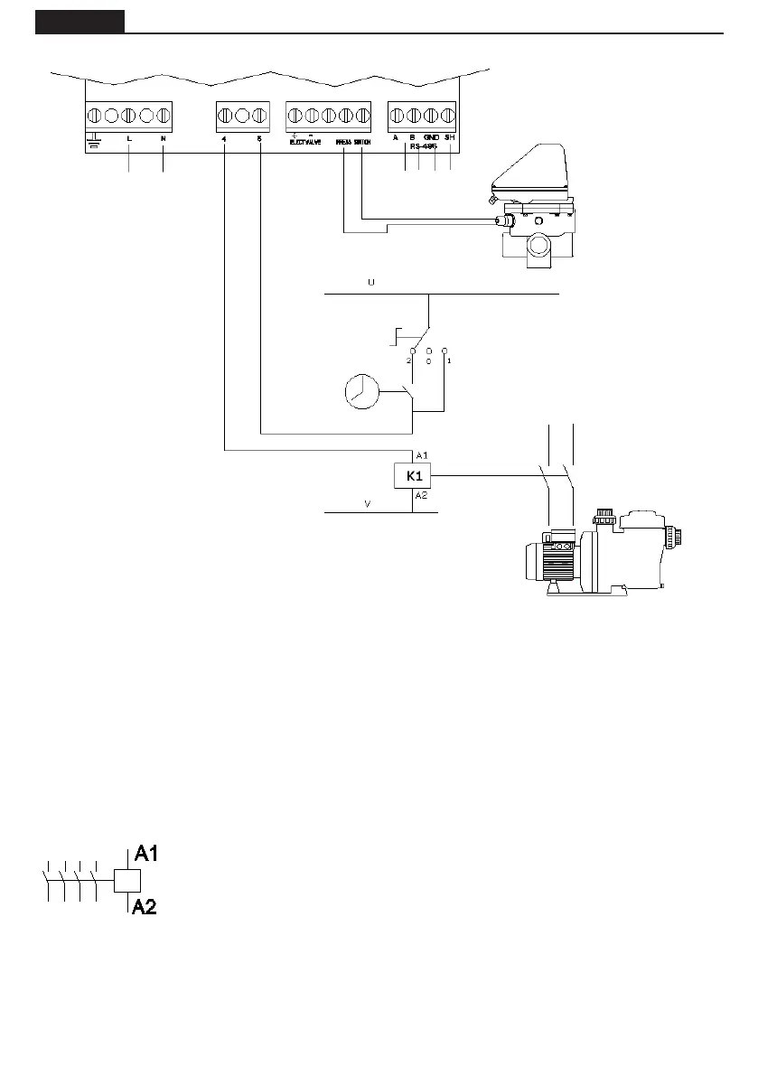 A1 / A2 are the terminals used to connect the ltration pump's contactor coil. Ter-