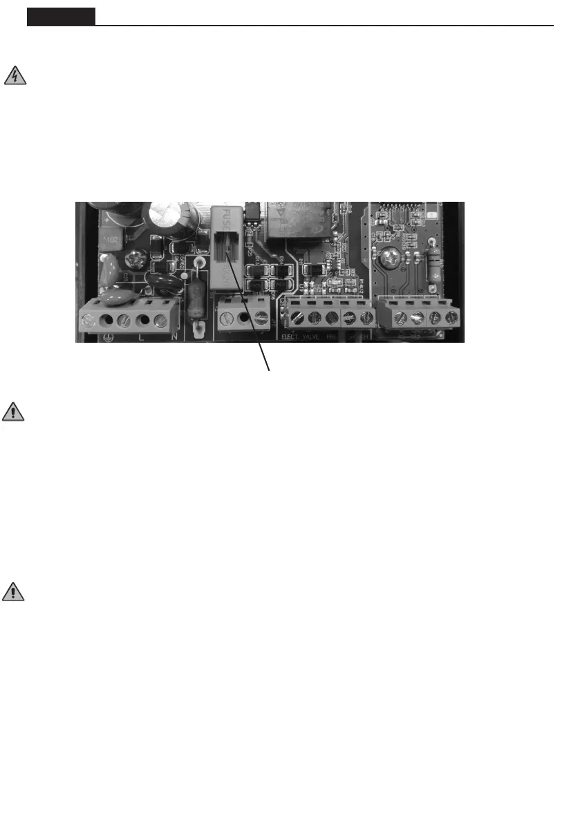 La plaque électronique de la vanne comporte un fusible de sécuripour éviter que la connexion J10 (bornes