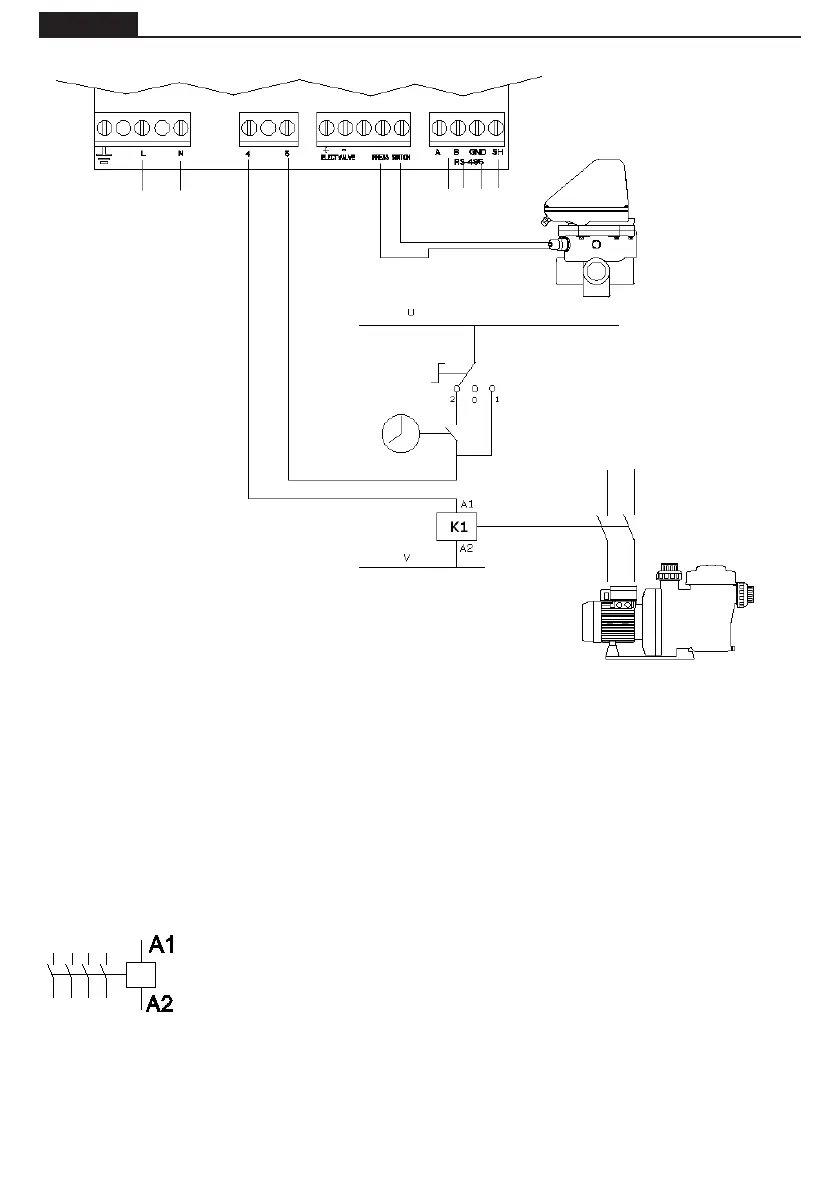A1 / A2 são os terminais de ligação da bobina do contactor da bomba de ltragem.