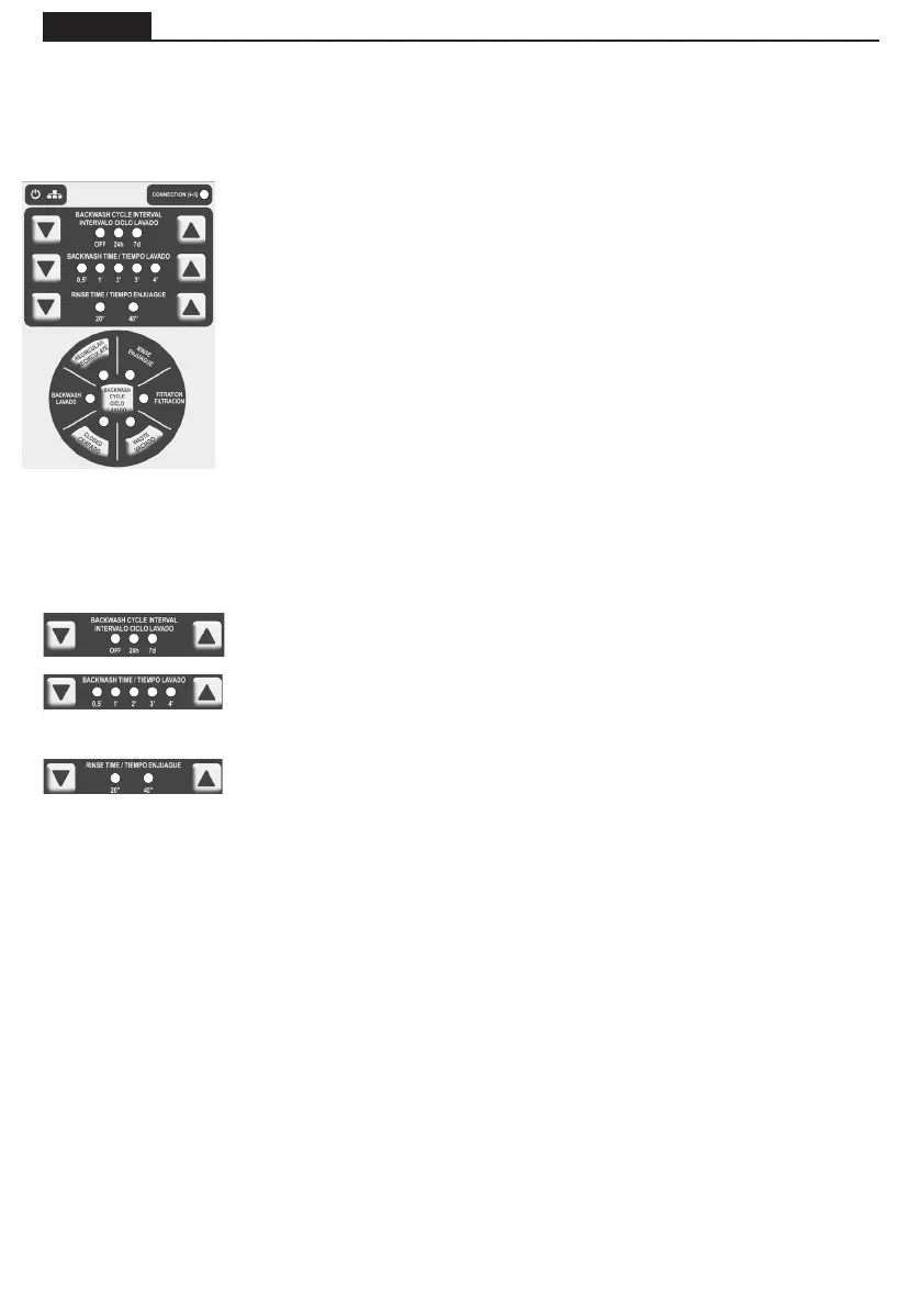 Spülzeit: die Druckknöpfe dienen zur Erhöhung oder Reduzierung der Spülzeit