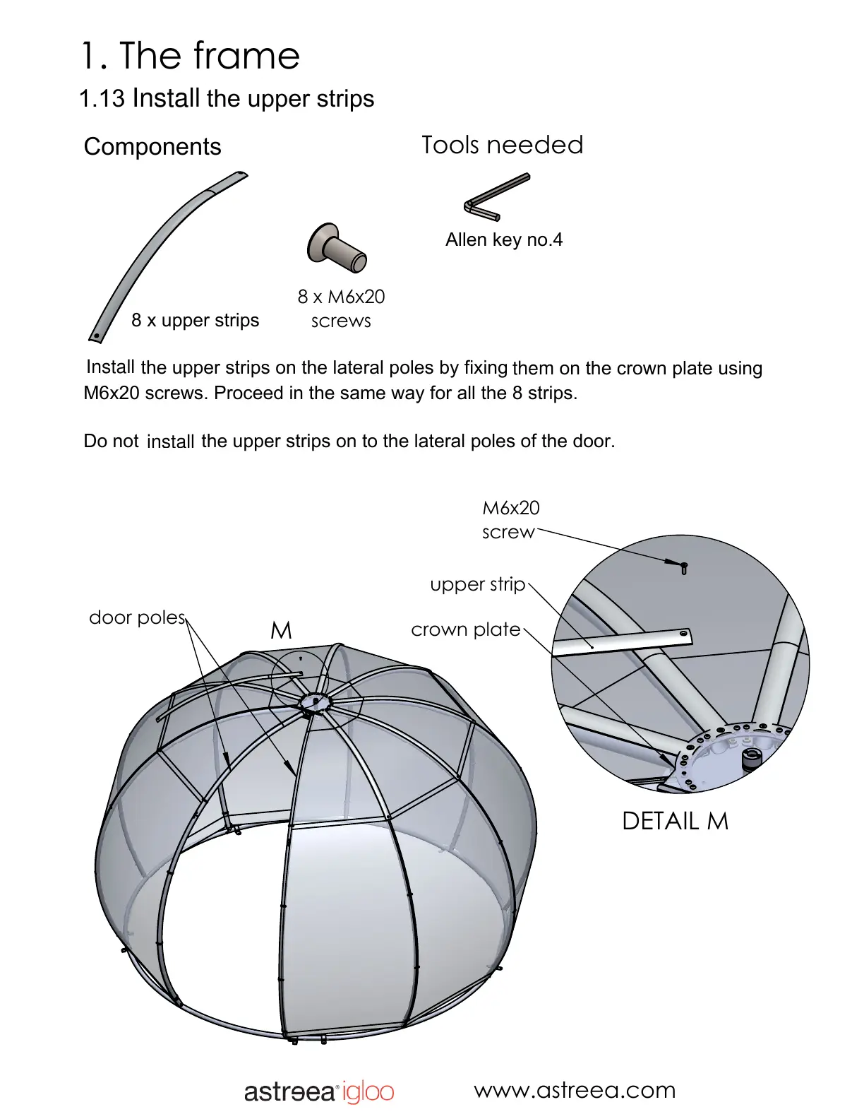 Mount the upper strips on the lateral poles by fixing its on the crown plate using