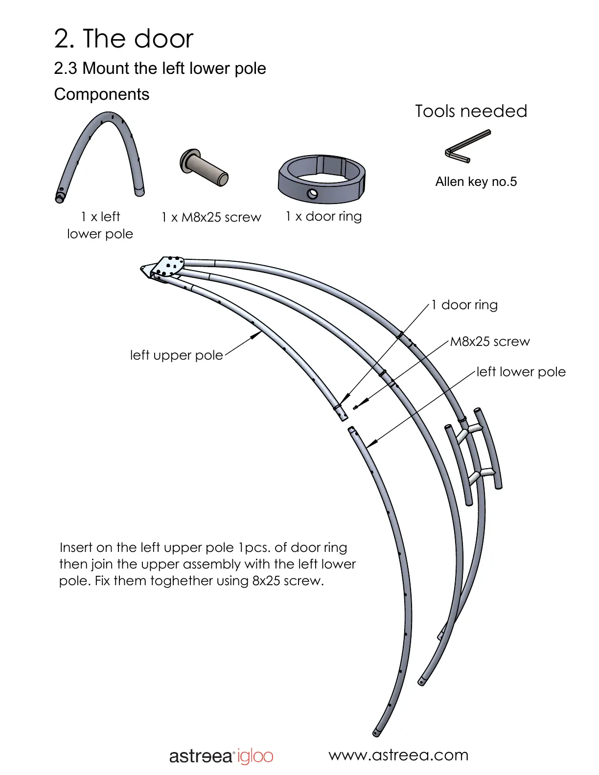 pole. Fix them toghether using 8x25 screw.