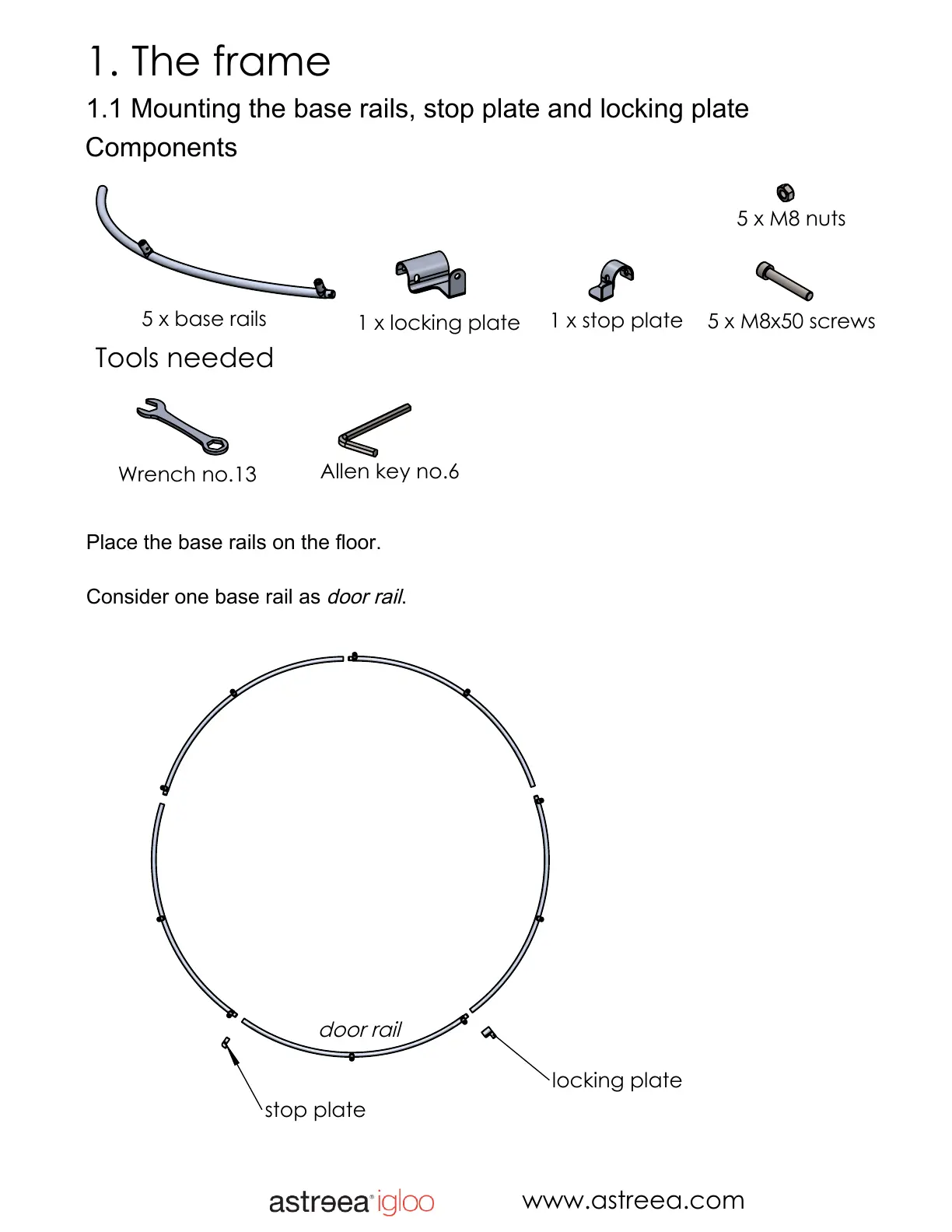 1.1 Mounting the base rails, stop plate and locking plate
