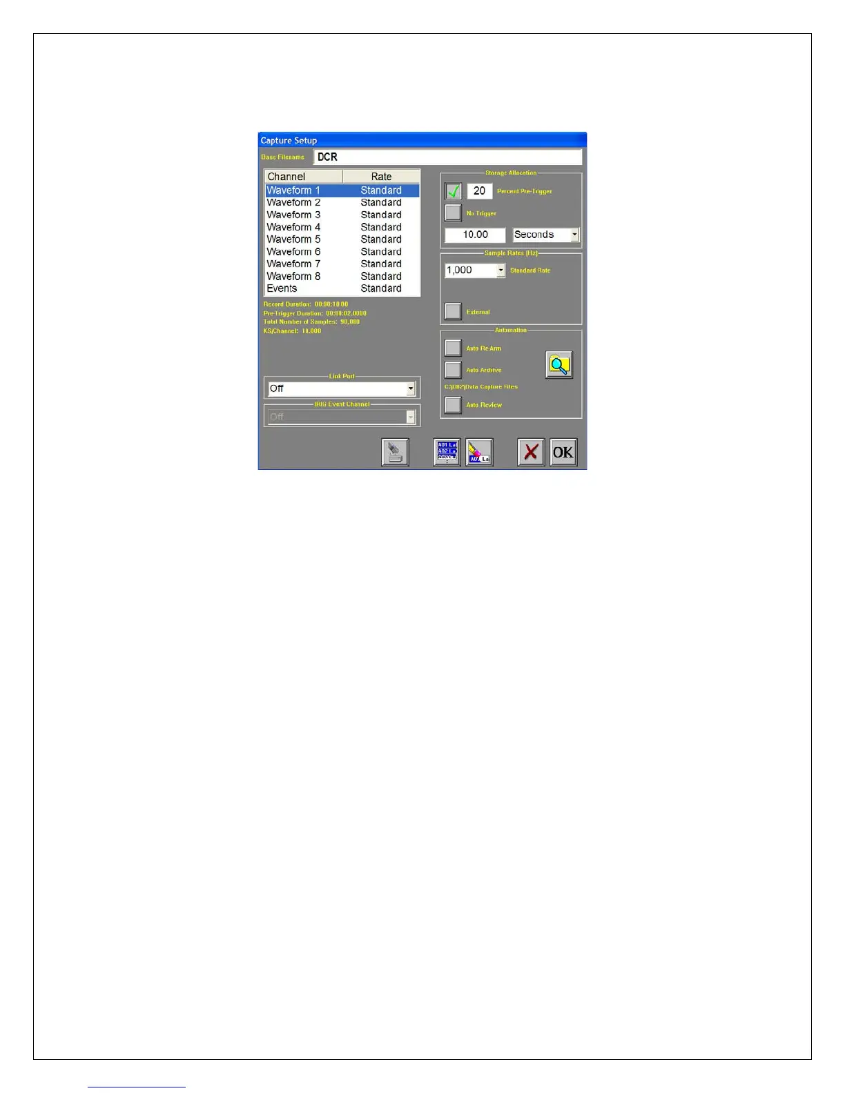 In the Storage Allocation box, press the Percent Pre-trigger box. Press the