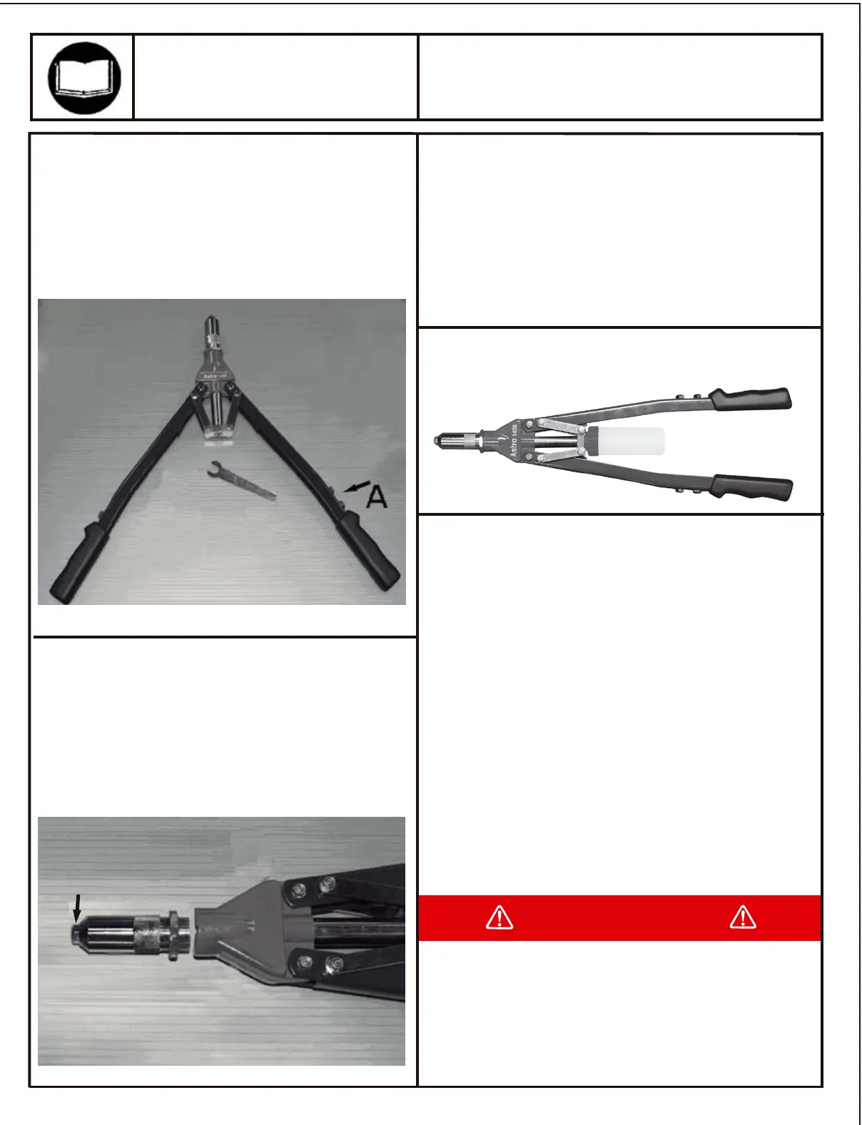 1. Para instalar un remache, abre las manivelas hacia