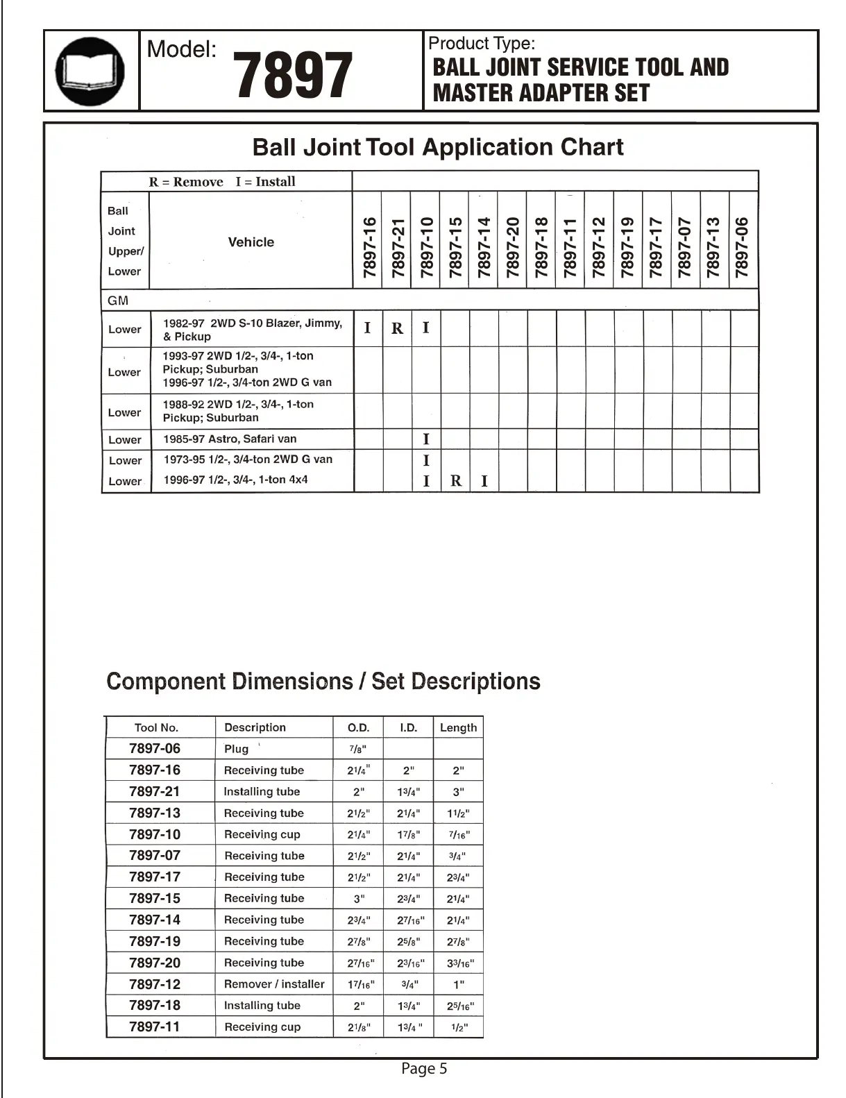 BALL JOINT SERVICE TOOL AND MASTER ADAPTER SET