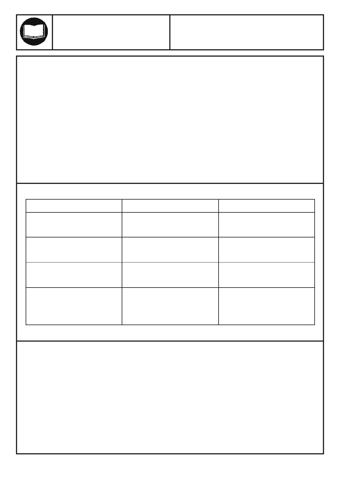 TROUBLE SHOOTING CHART: