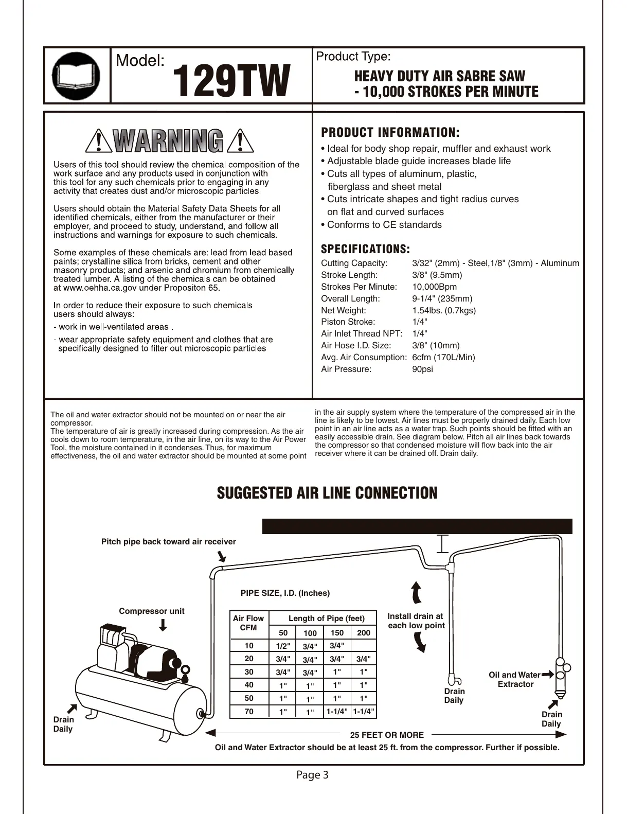 quality air tool oil at the air inlet. After 3 to 4 hours of