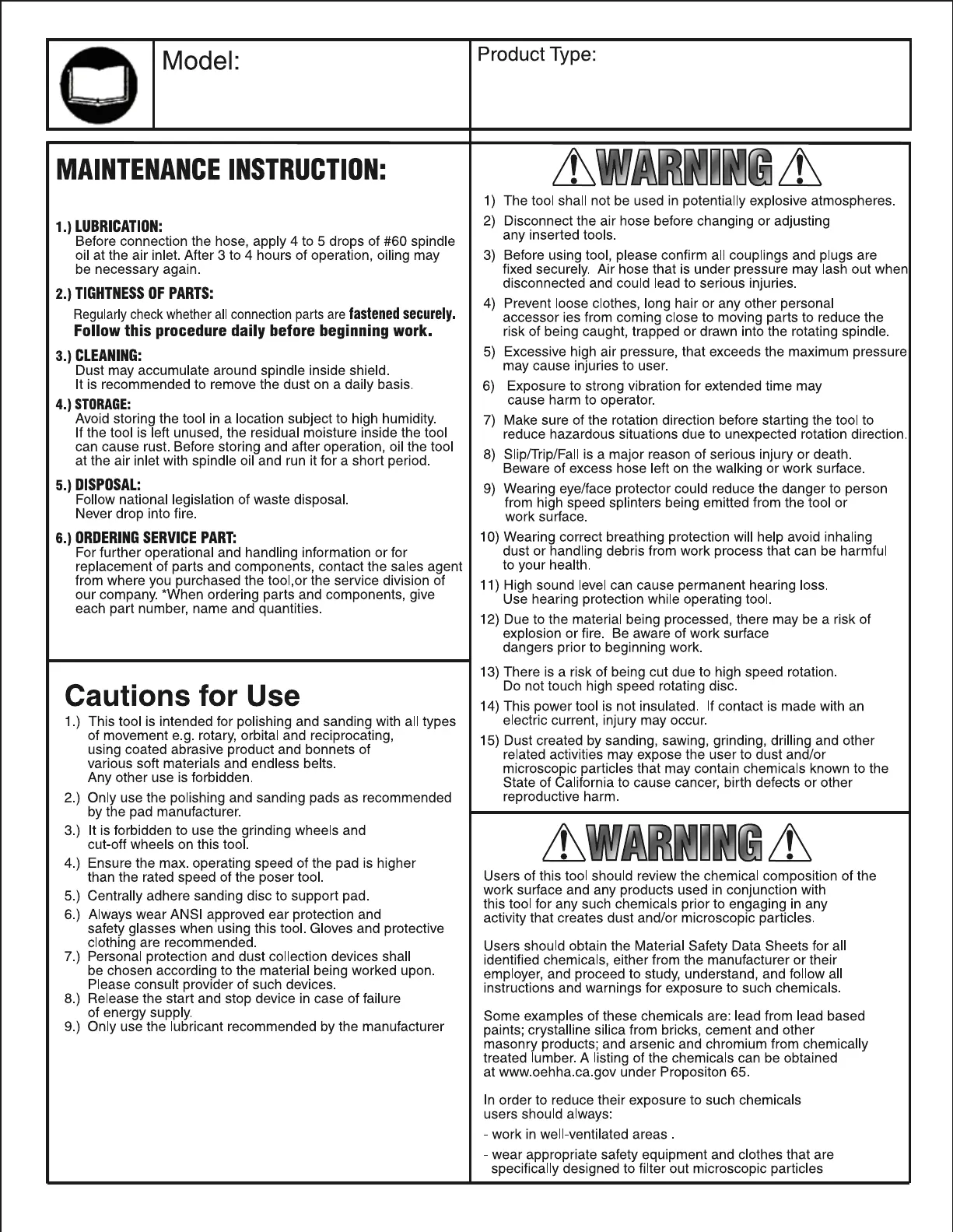 •Astro Pneumatic Tool Co. warrants our products to the original user against