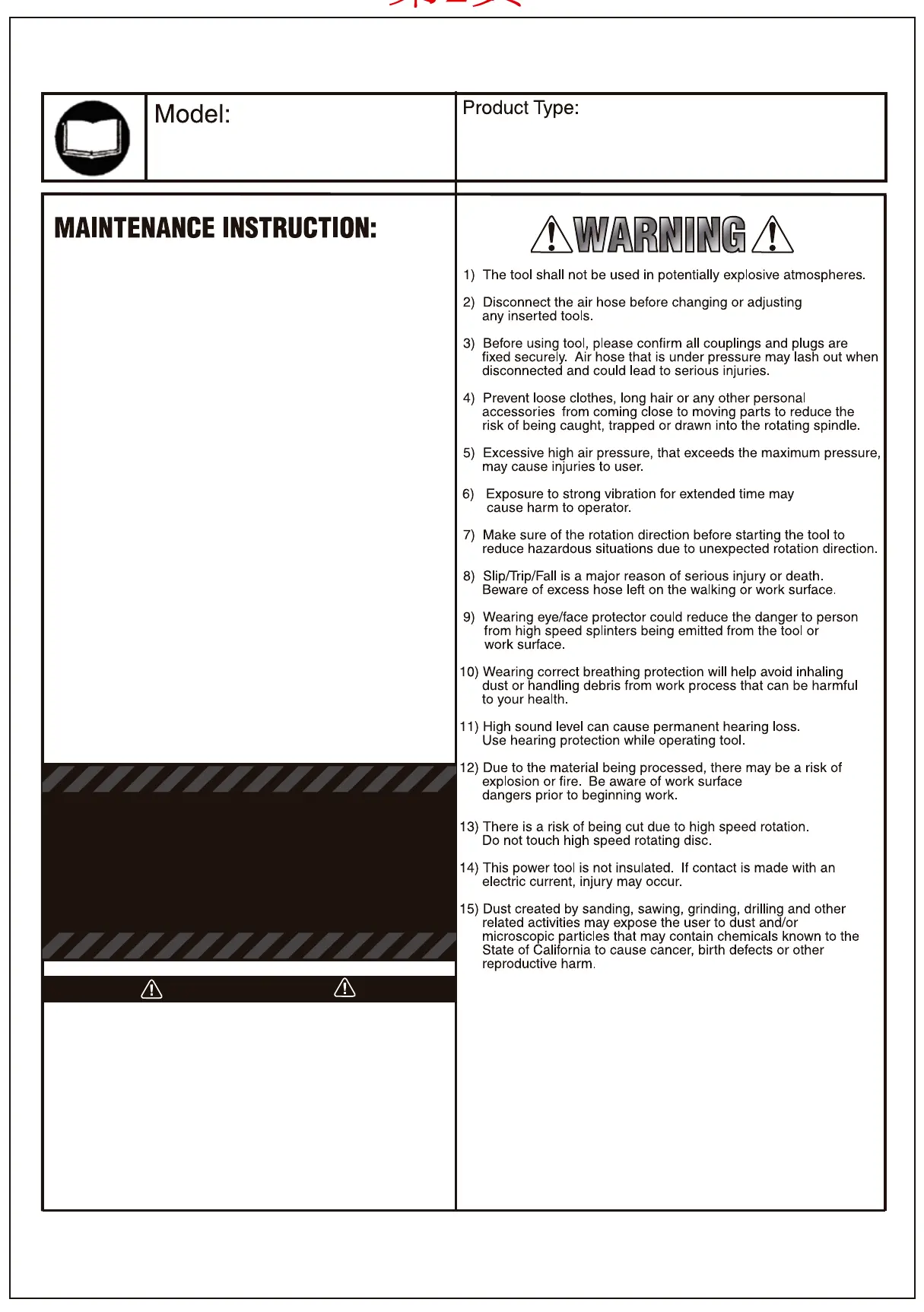 b) Always disconnect air supply from tool prior to