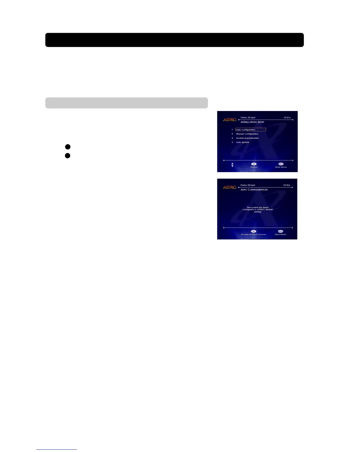 • While watching ASTRO programmes press MENU. The main menu screen