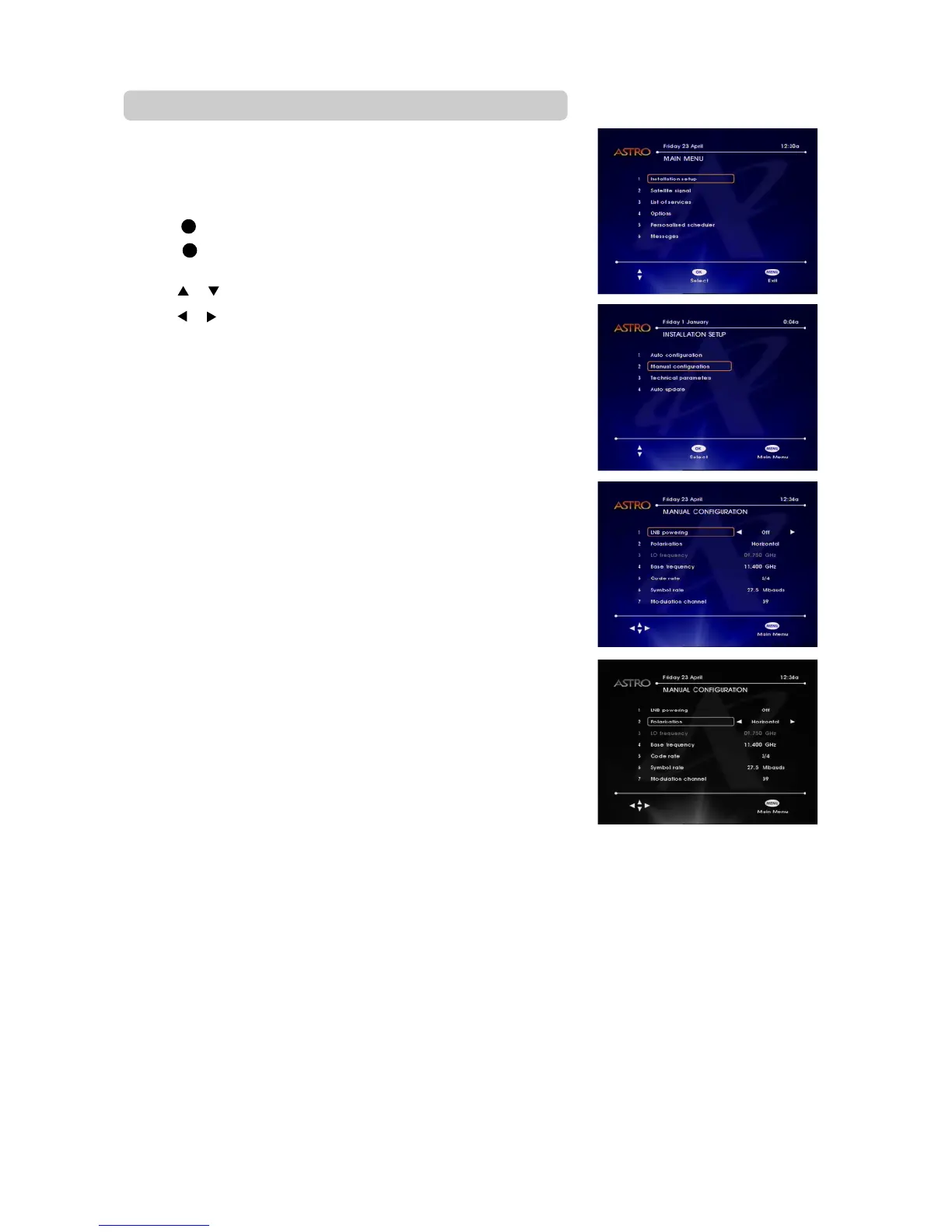 receive ASTRO signals. This option allows you to switch ON or OFF the