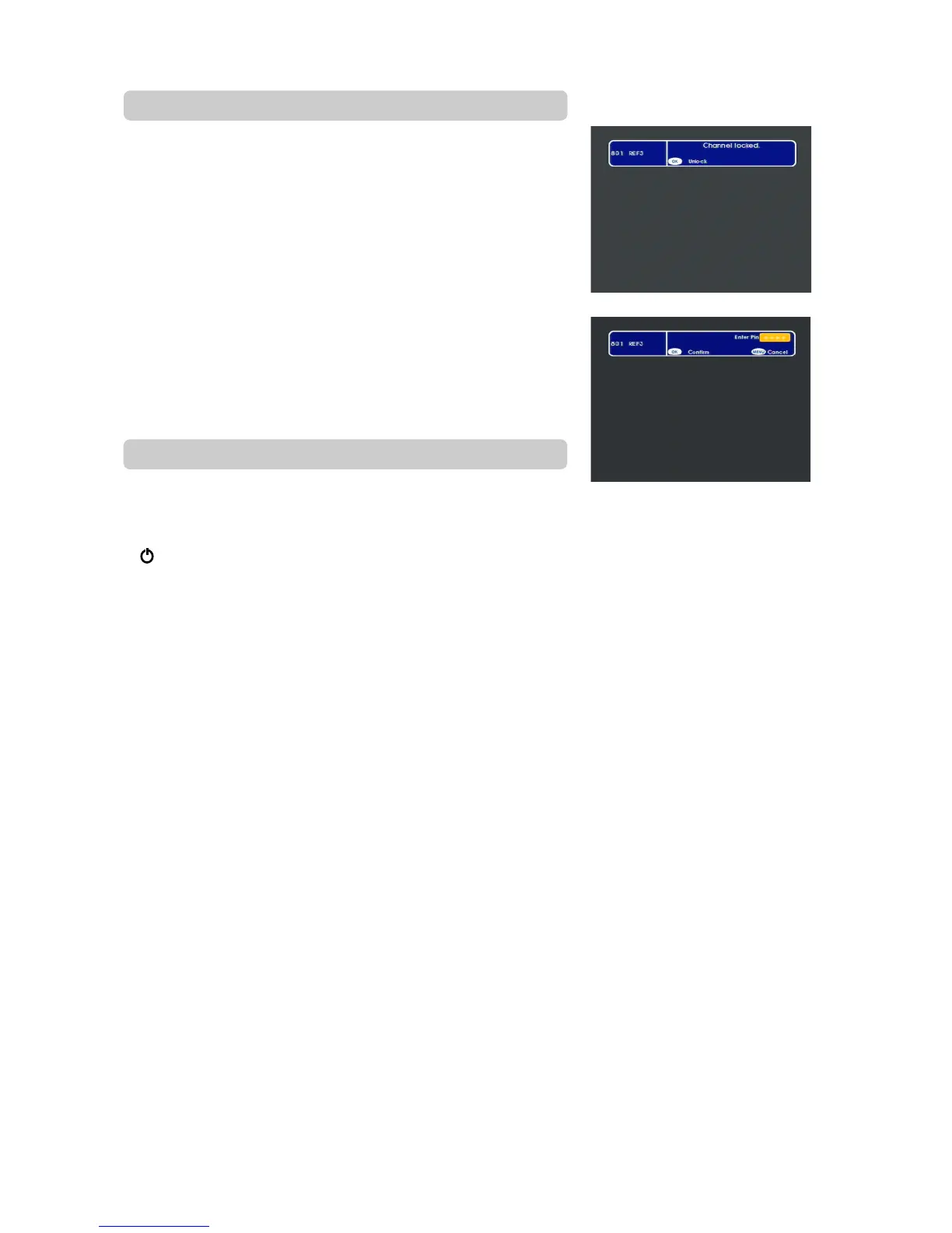 • When you select a channel that has been locked you will not be able to see