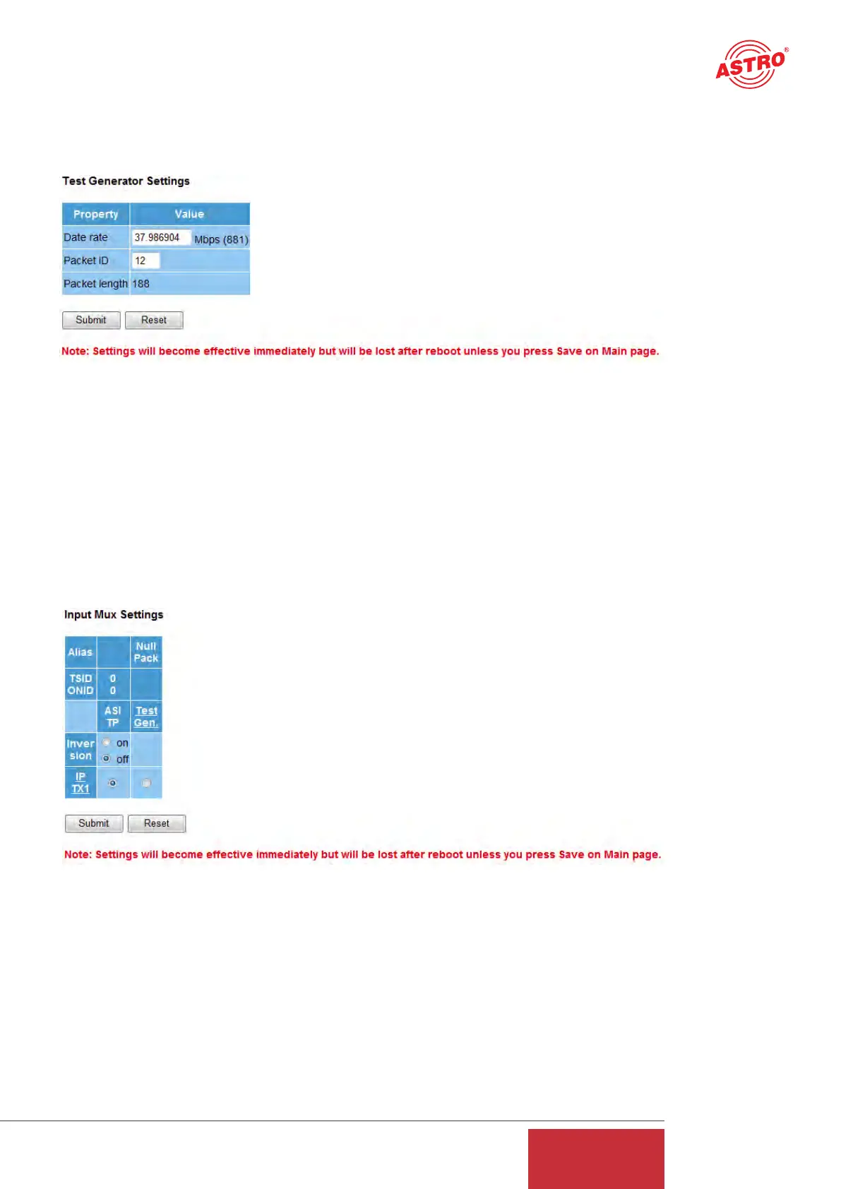 Clicking on the "Test Gen" submenu takes you to the test generator settings. This internal test