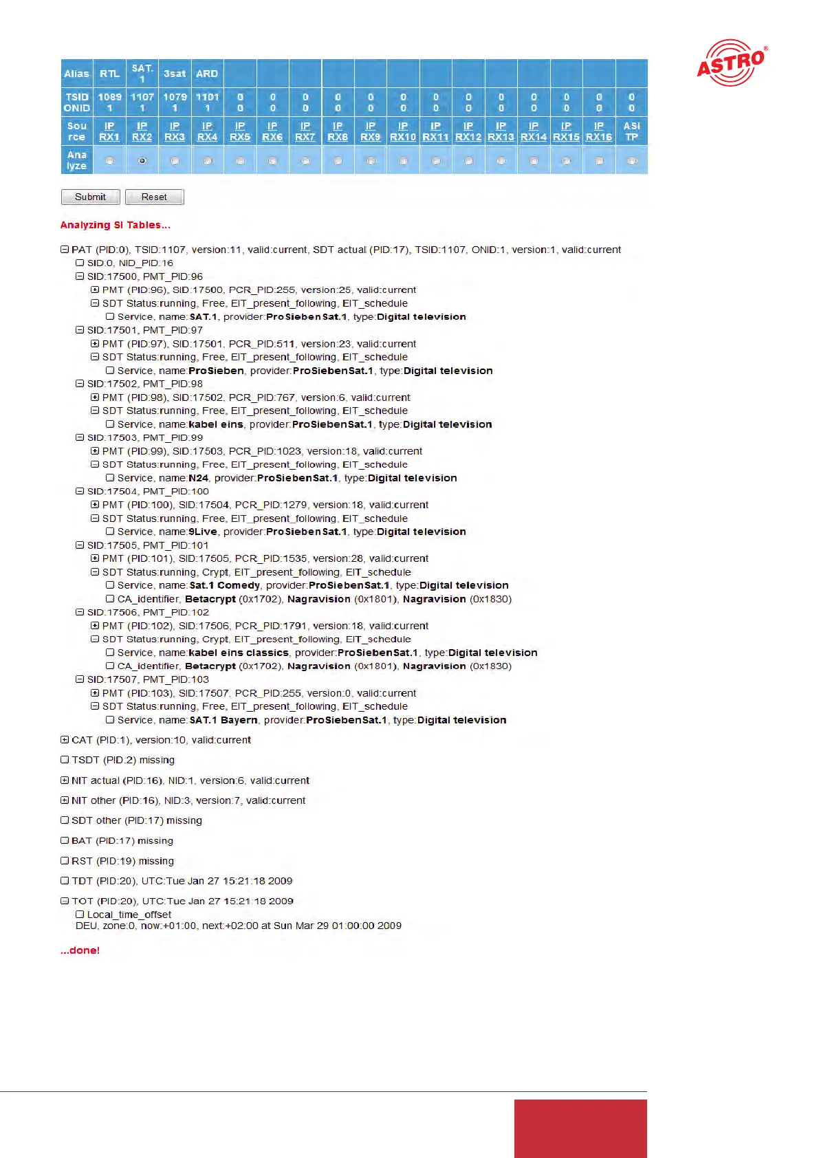 details. Through selection of the "ASI TP" as the TS to be analyzed, the TS analyzer also provides