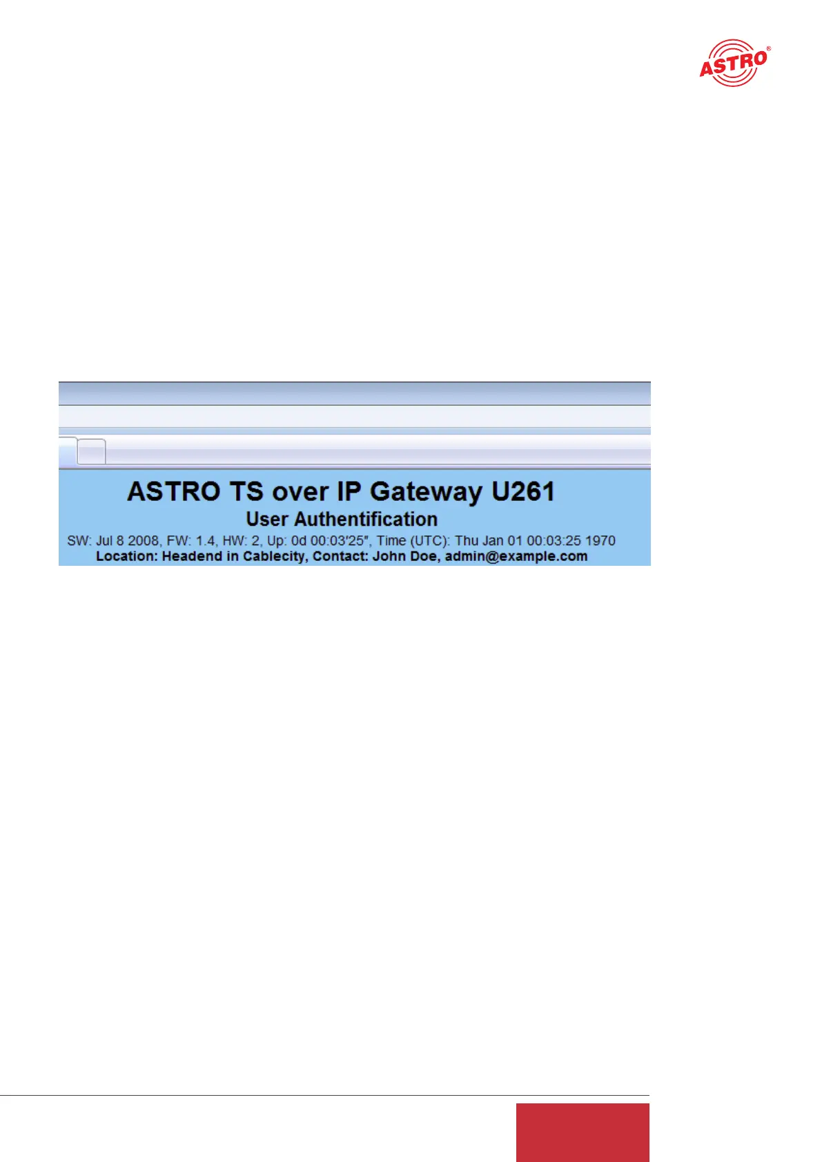 the U 261 can be started following input of the IP address in the address line of the Web browser.