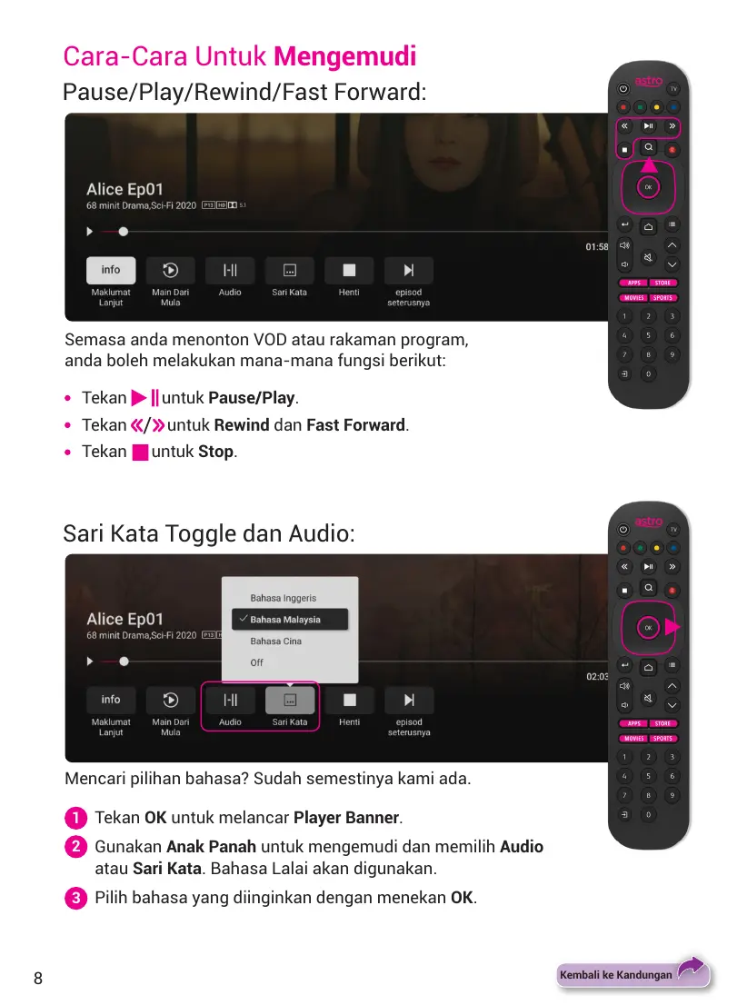 Semasa anda menonton VOD atau rakaman program,