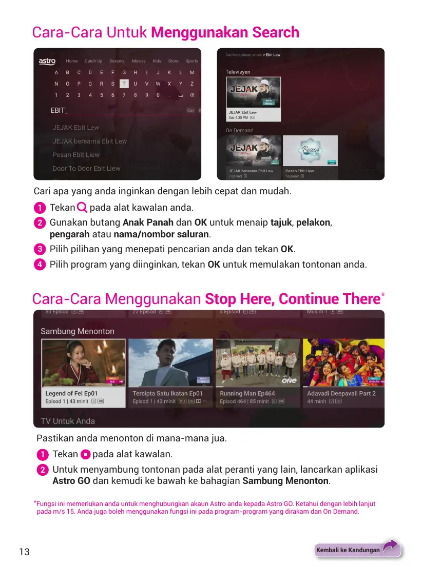 Fungsi ini memerlukan anda untuk menghubungkan akaun Astro anda kepada Astro GO. Ketahui dengan lebih lanjut