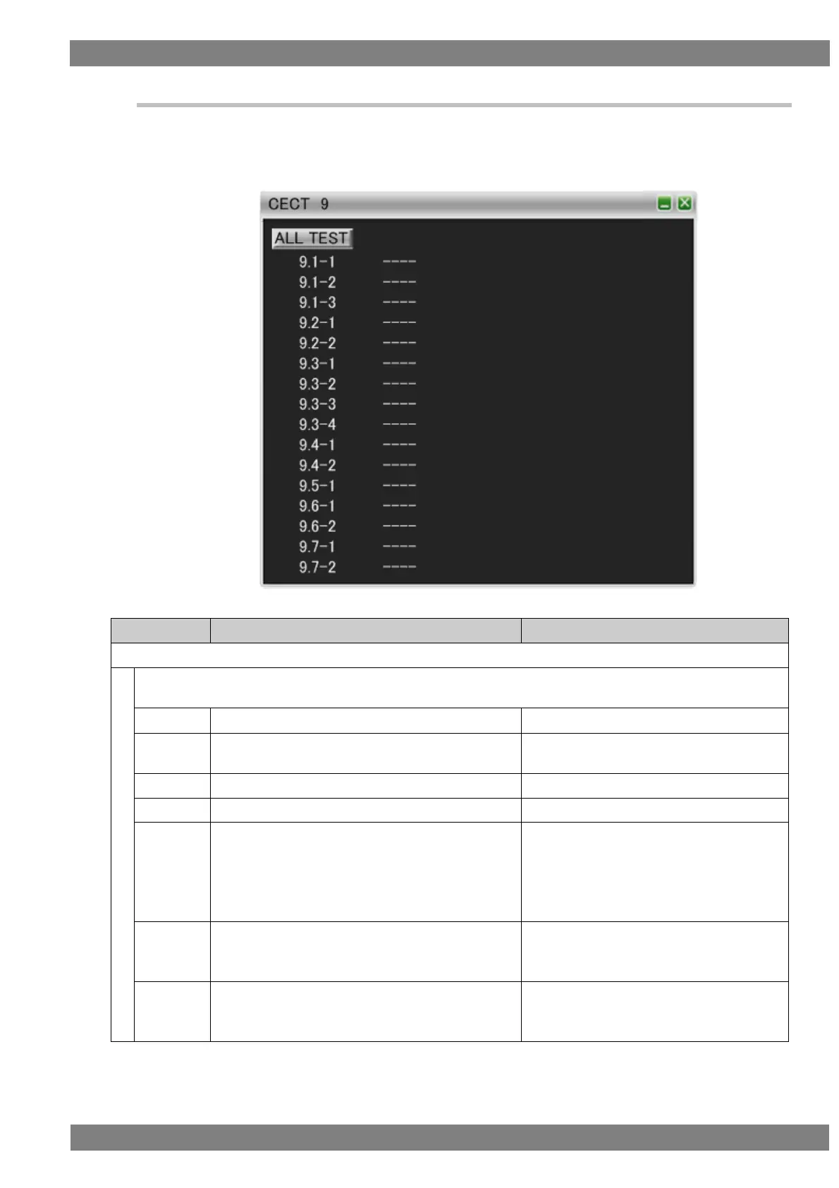 When “ALL TEST” is selected, the tests for the test IDs are started. When a test ID number is clicked with the
